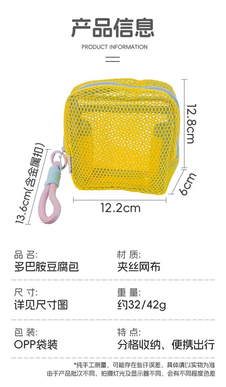 도파민 메쉬 토프루 팩 사각형 그리드 잡화 수납 소형 가방 여행용 다목적 데이터 케이블 수납 가방