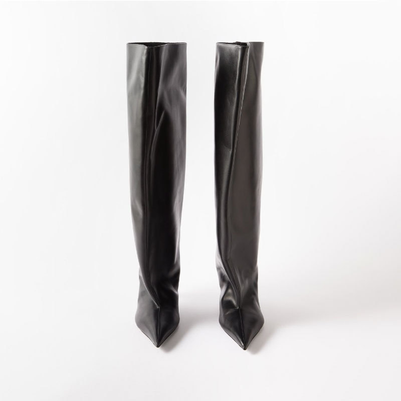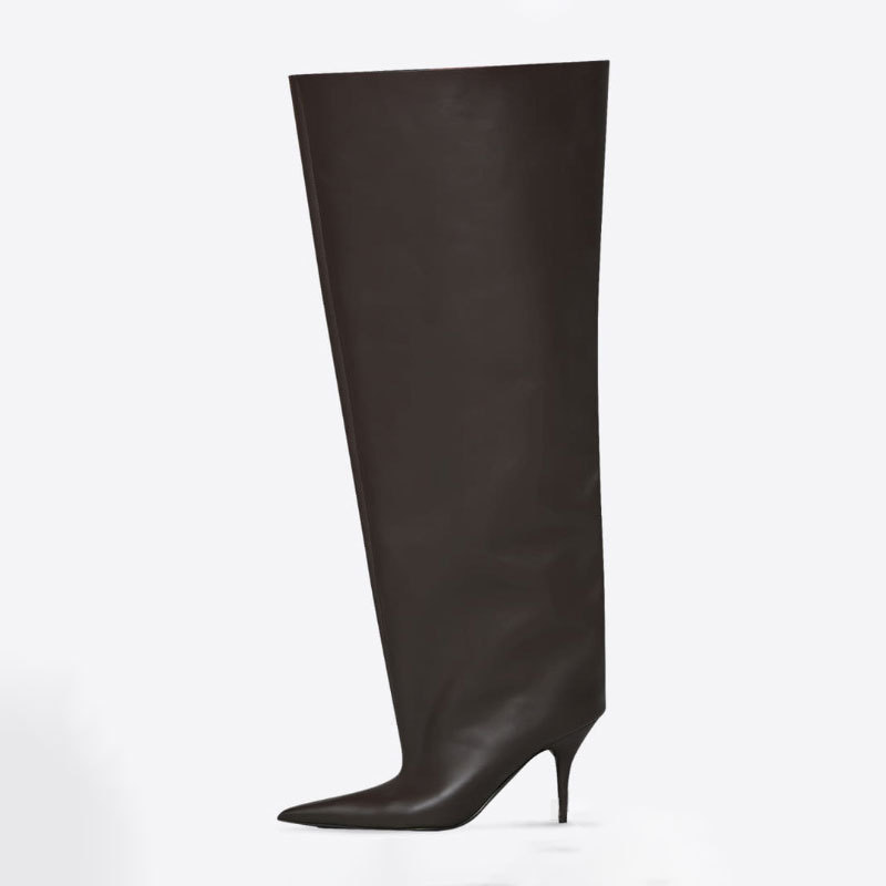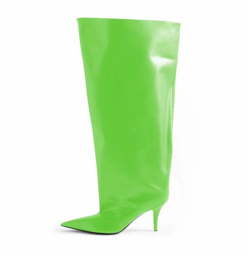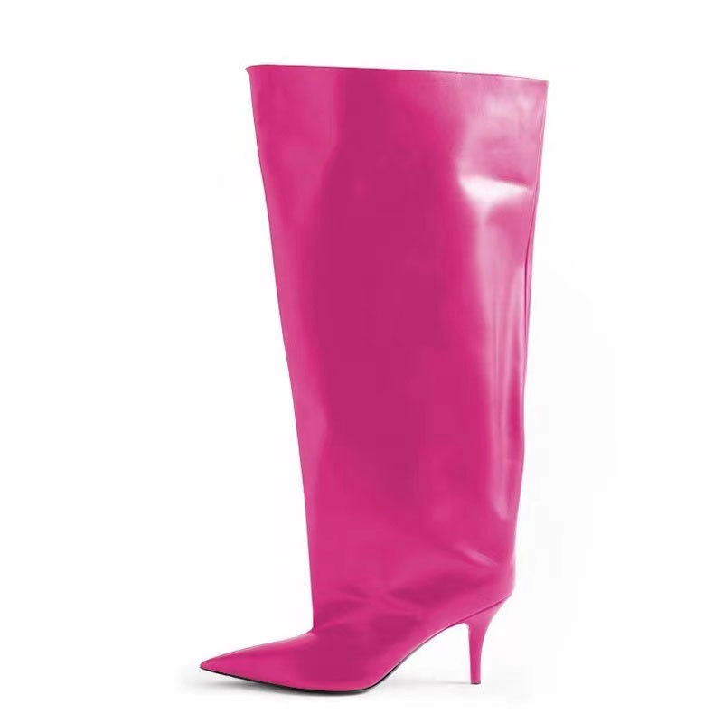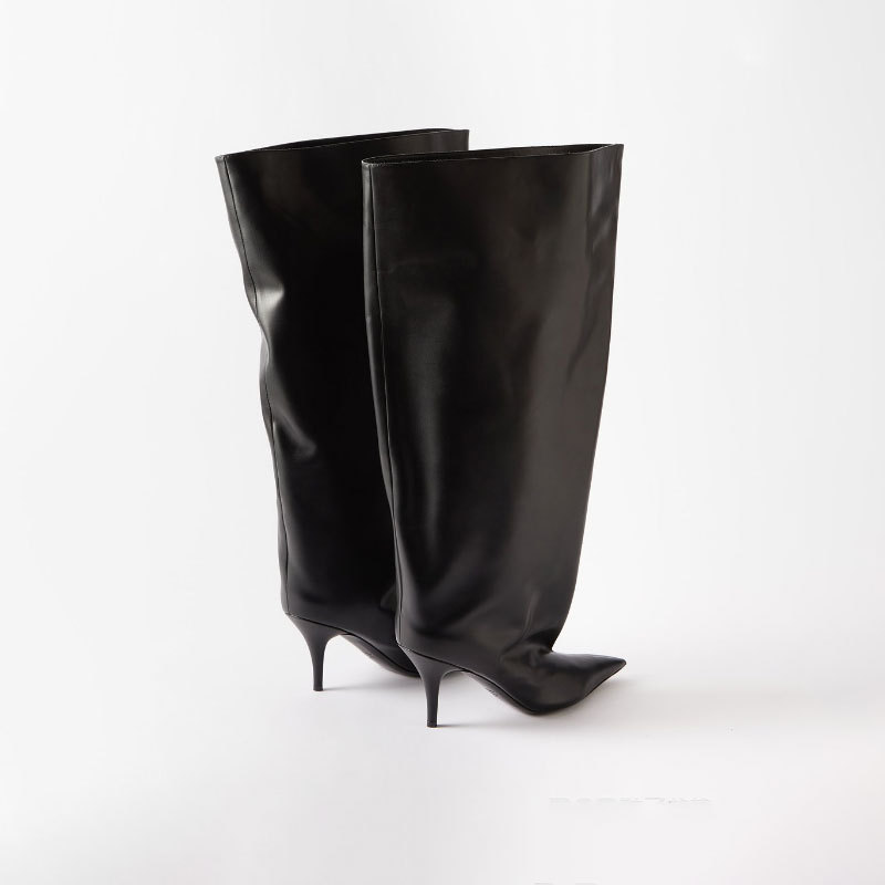 유럽과 미국 국경 대외 무역 새로운 캣워크 포인트 하이힐 큰 부츠 패션 개성 소매 무릎 부츠 여성 신발