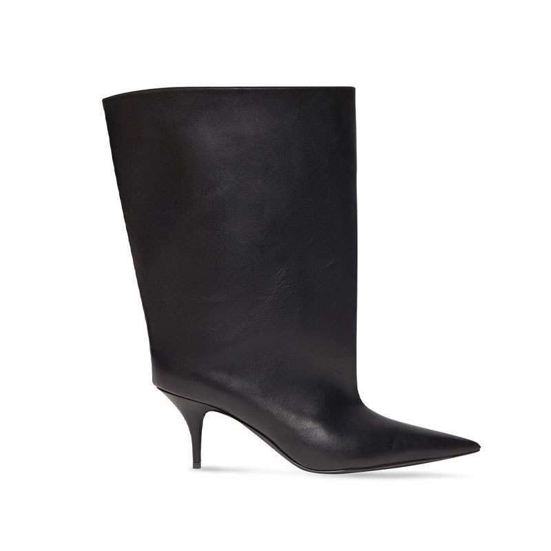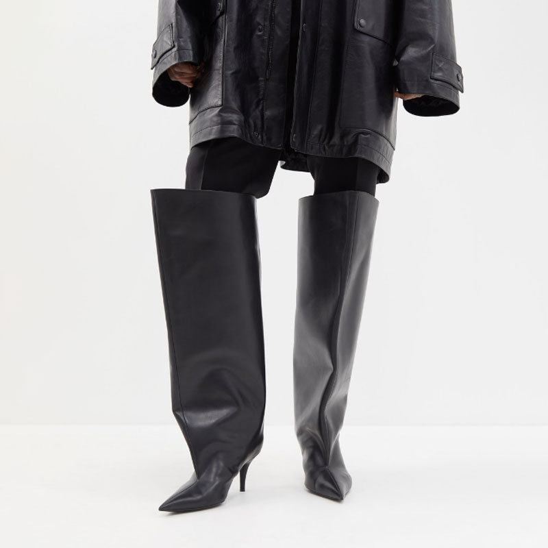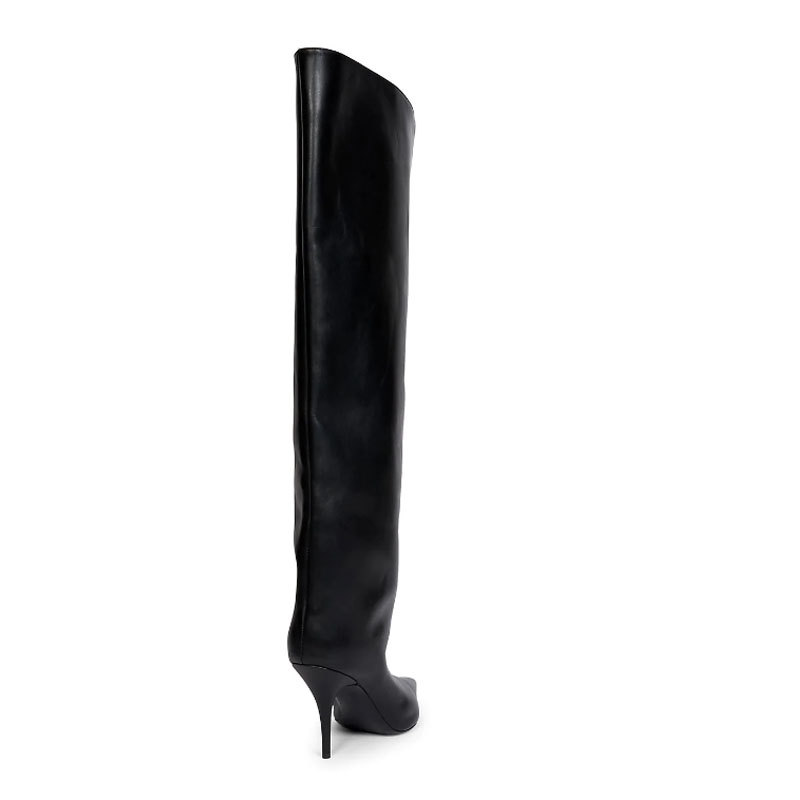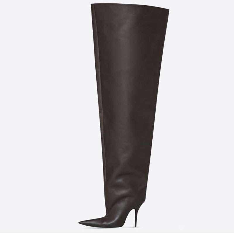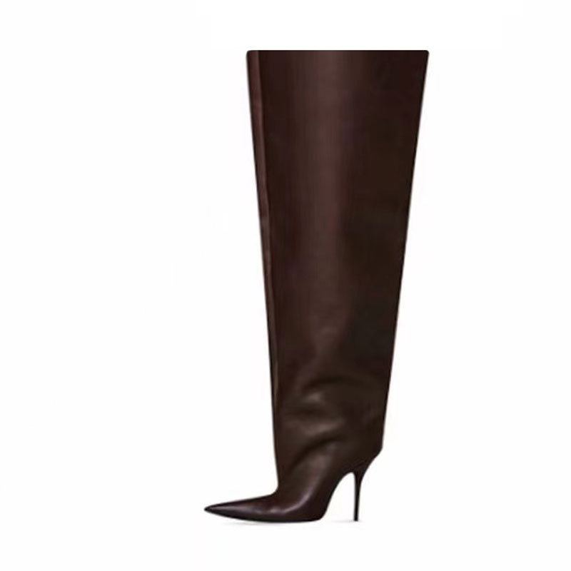 유럽과 미국 국경 대외 무역 새로운 캣워크 포인트 하이힐 큰 부츠 패션 개성 소매 무릎 부츠 여성 신발