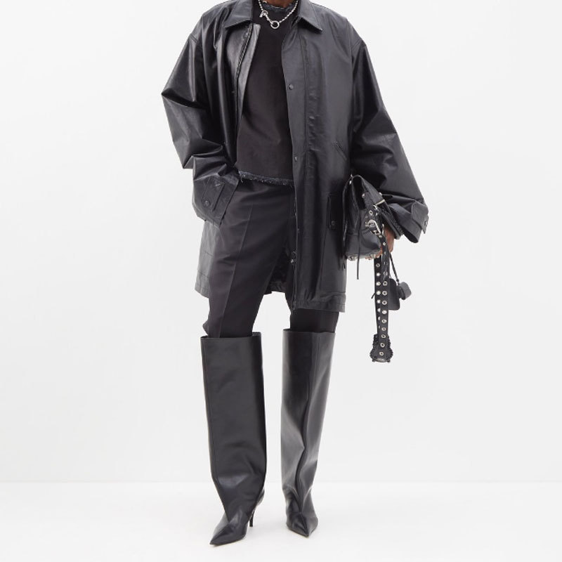 유럽과 미국 국경 대외 무역 새로운 캣워크 포인트 하이힐 큰 부츠 패션 개성 소매 무릎 부츠 여성 신발스토어 가기