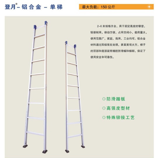 공장 직접 공급 Henan Dening Industrial 등급 알루미늄 합금 단일 사다리 2m-6m 완전한 사양스토어 가기