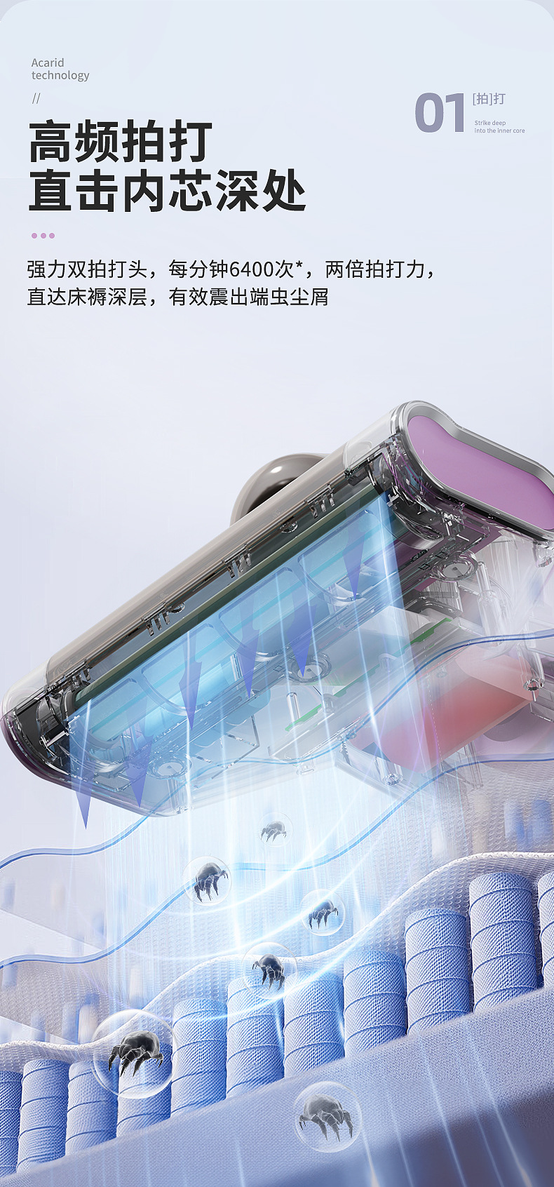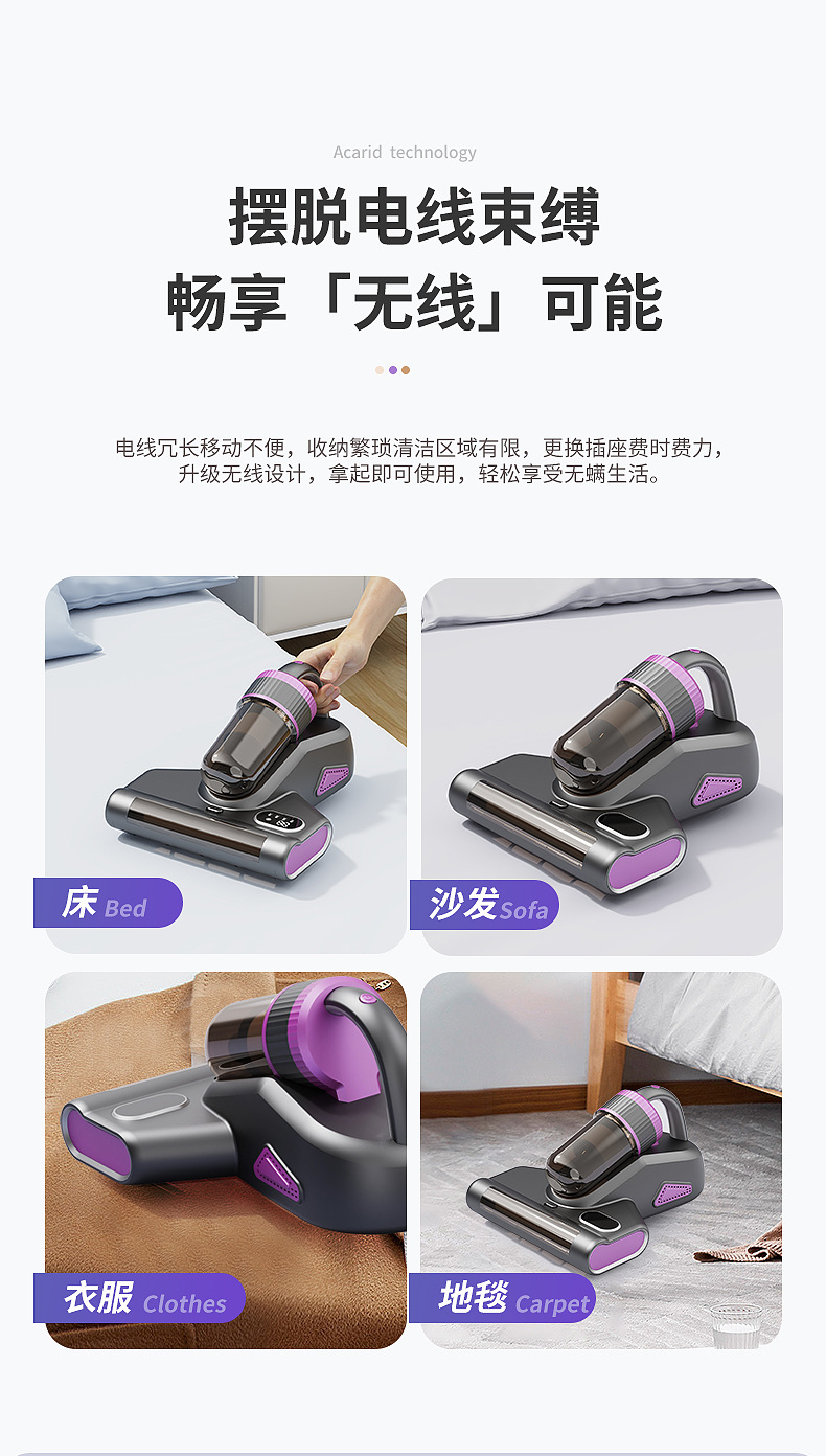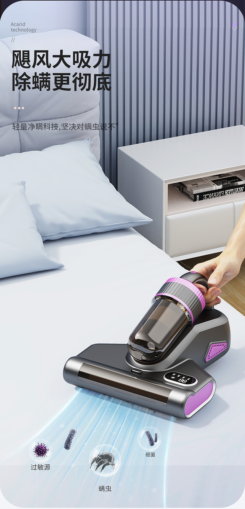 아마존 강력 흡입 소형 가정용 롤러 브러시 진공 청소기 살균 진드기 제거 자외선 무선 가정용 진드기 제거기