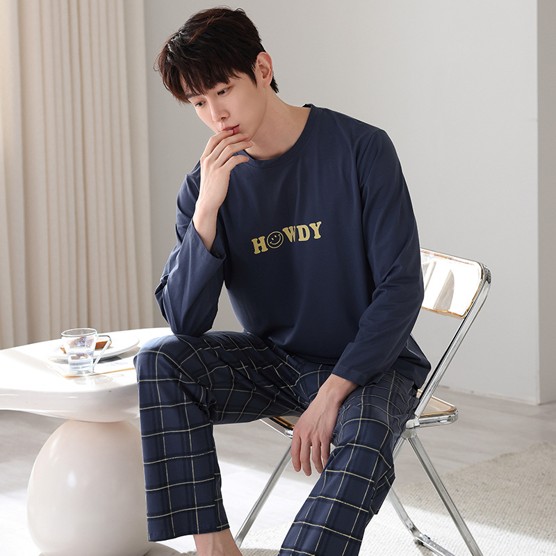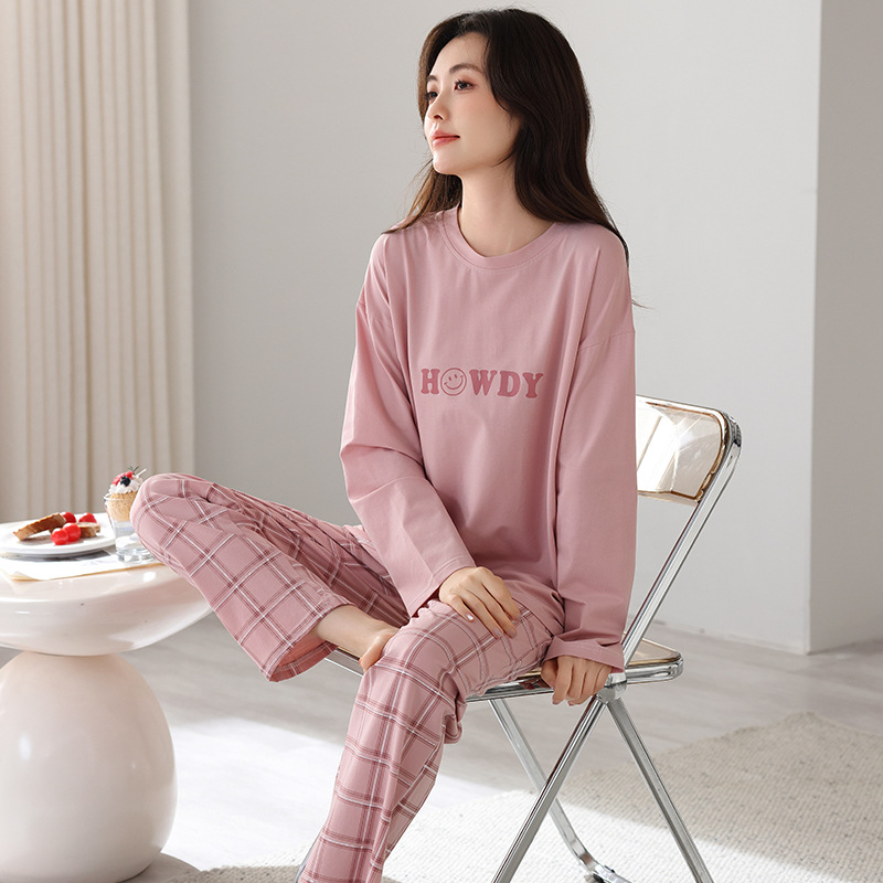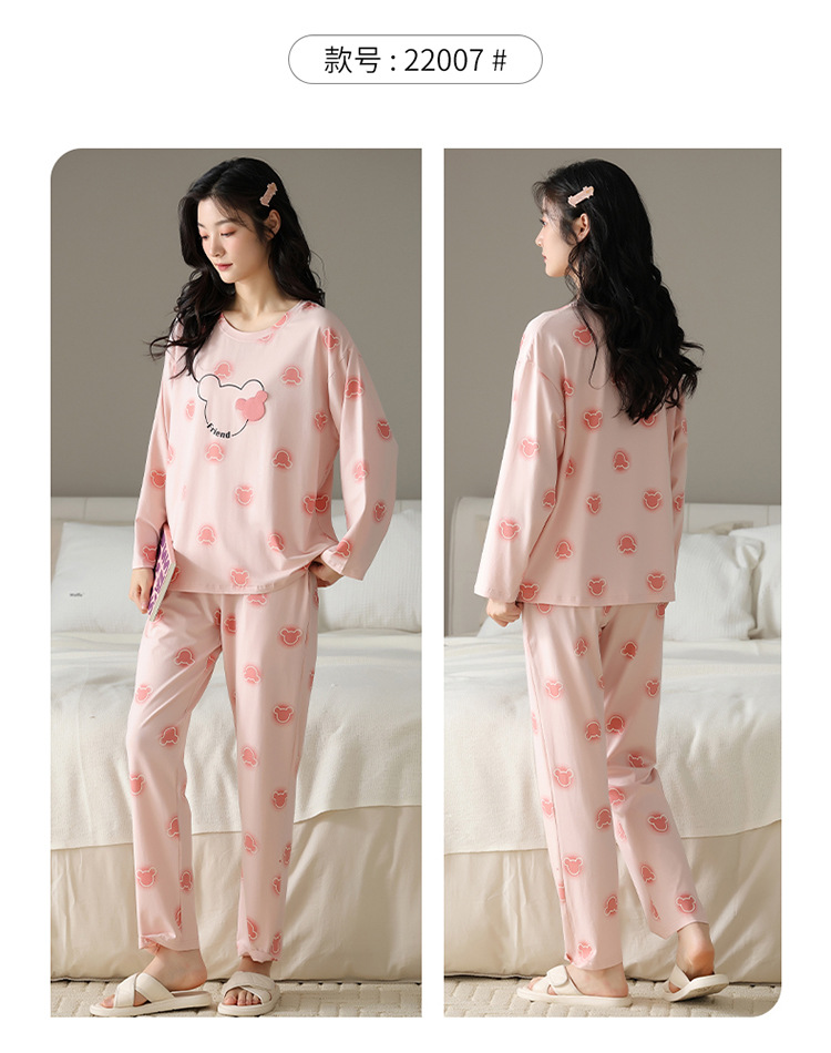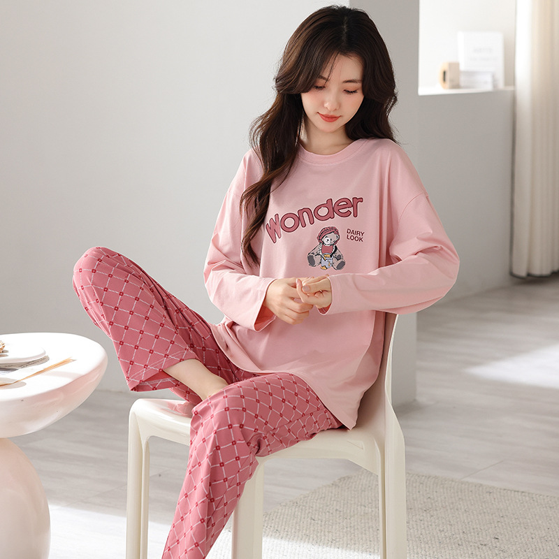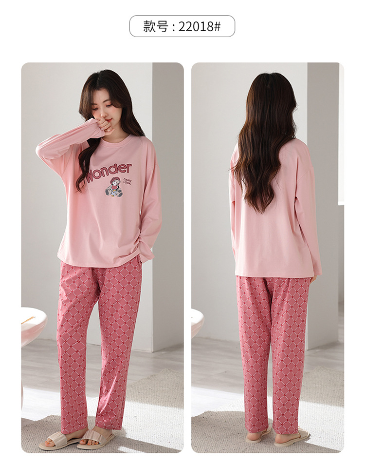 브래킷 쿨 코튼 라이크라 커플 파자마 여성용 봄과 가을 코튼 긴 소매 라운드 넥 캐주얼 가을과 겨울 남자 홈 의류 세트스토어 가기