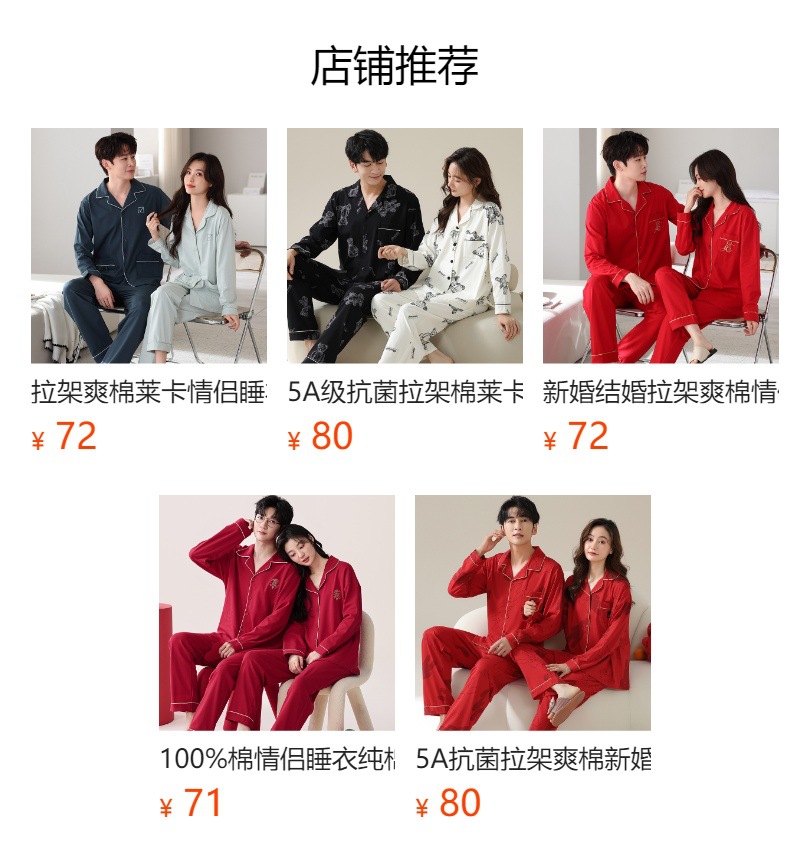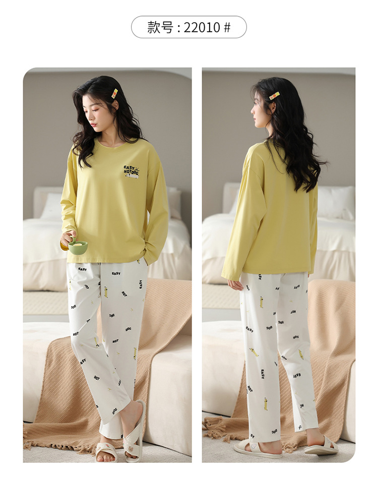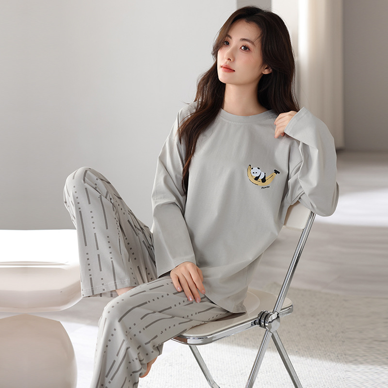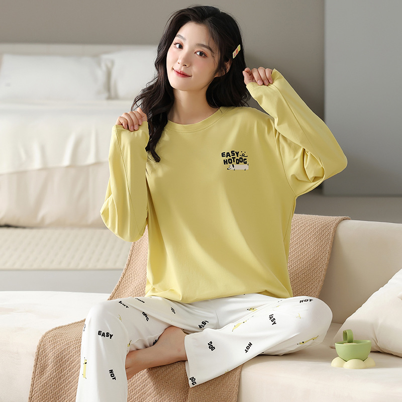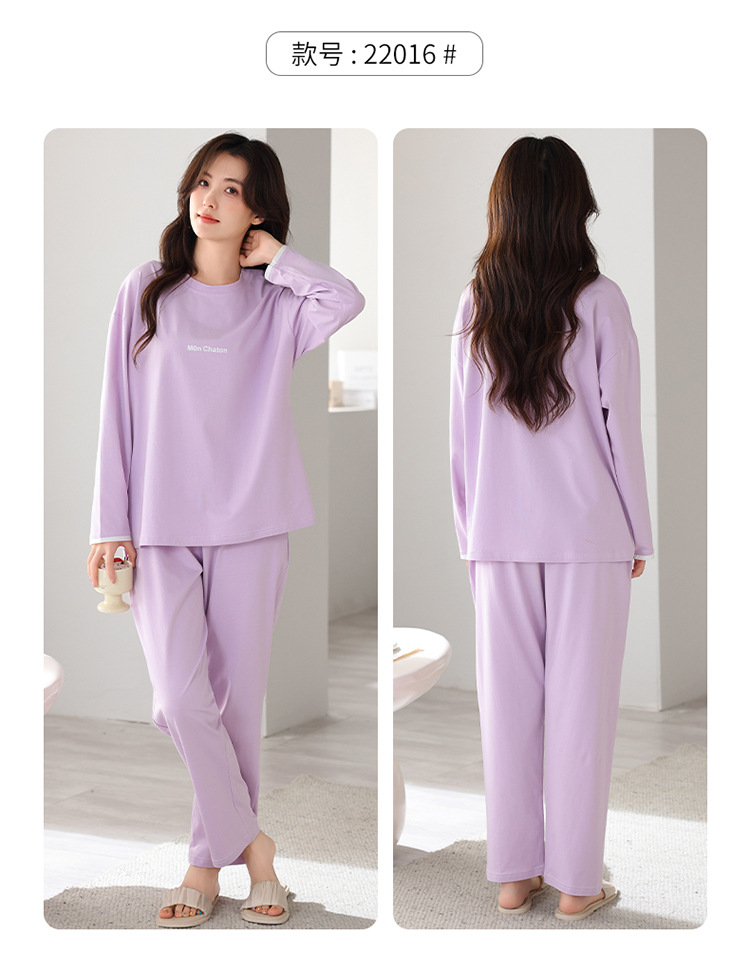 브래킷 쿨 코튼 라이크라 커플 파자마 여성용 봄과 가을 코튼 긴 소매 라운드 넥 캐주얼 가을과 겨울 남자 홈 의류 세트스토어 가기