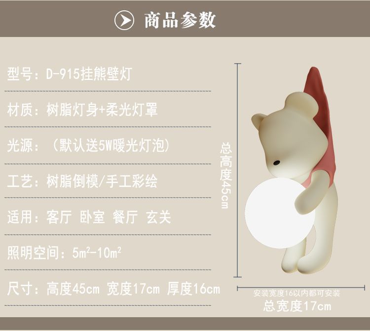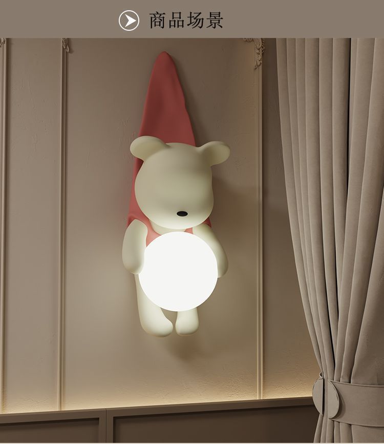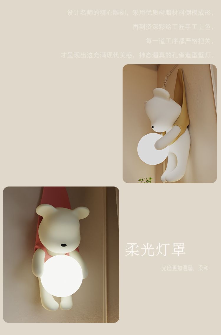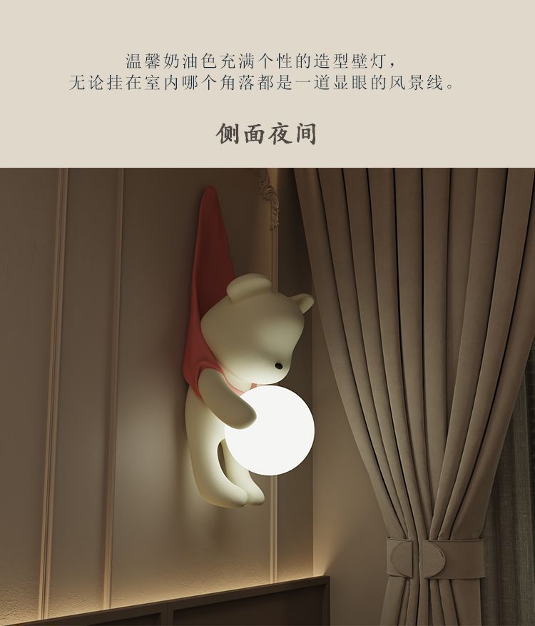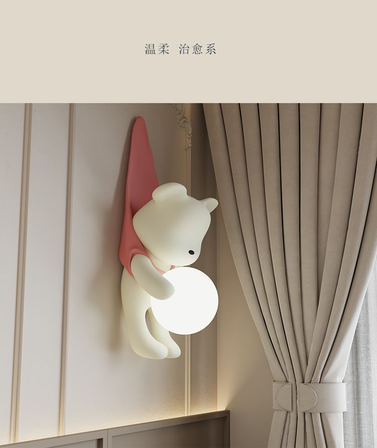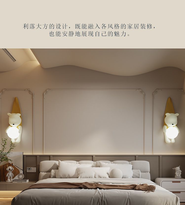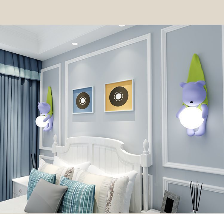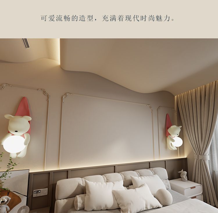 곰 크림 스타일 거실 배경 벽 소년과 소녀 침실 침실 램프 어린이 방 창조적 인 현대 장식 벽 램프스토어 가기