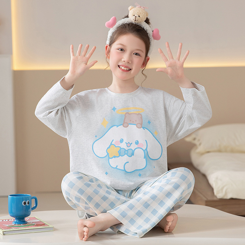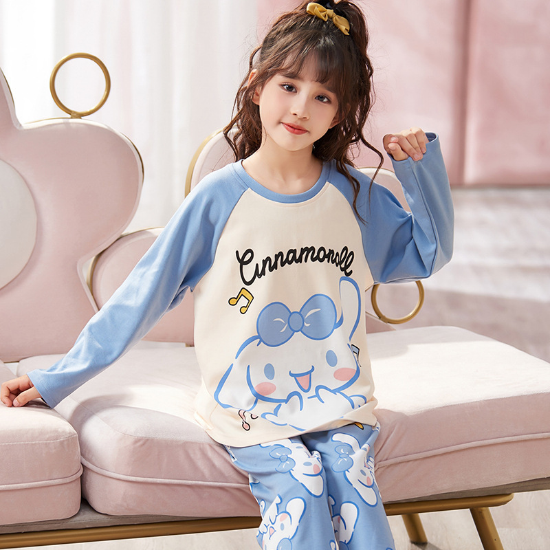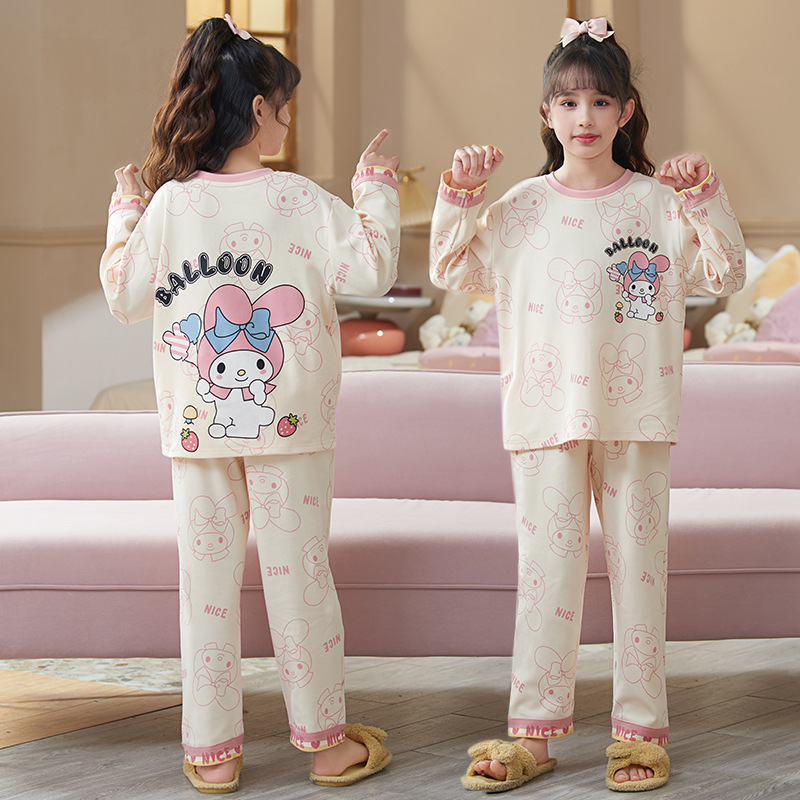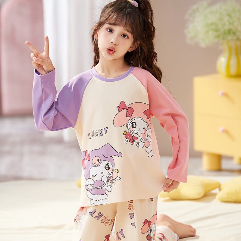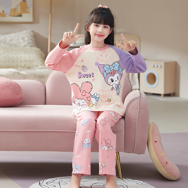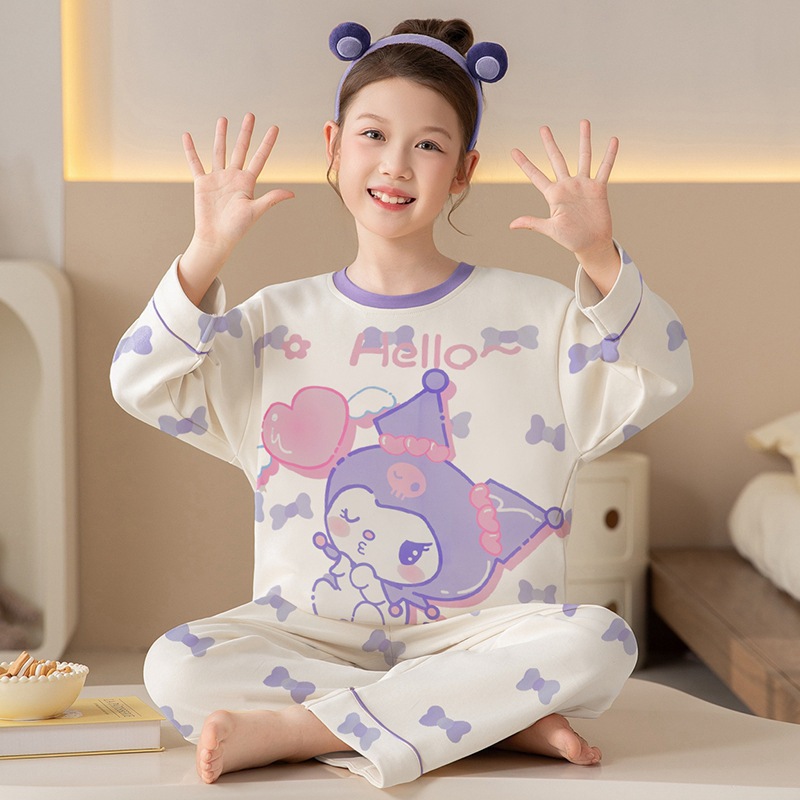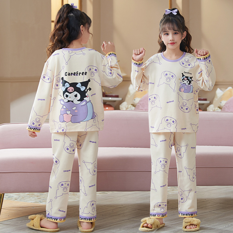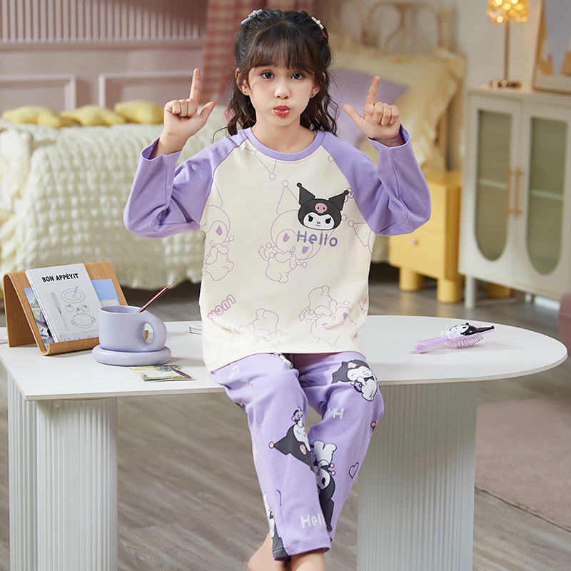 쿠로미 순면 아동 잠옷 여아 가을 라운드넥 긴팔 만화 캐릭터 중대형 어린이 공주 소녀 홈웨어 12