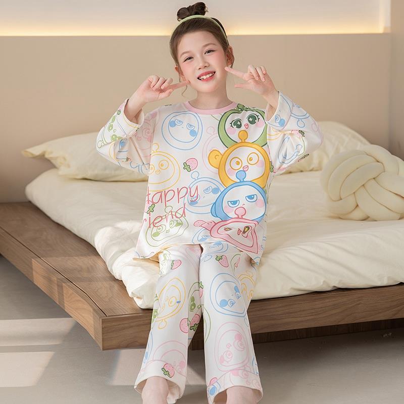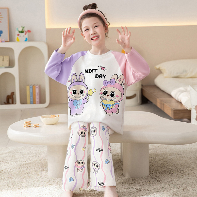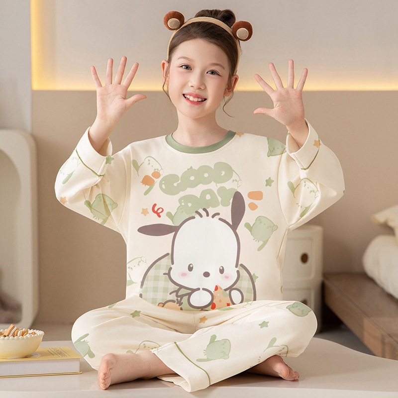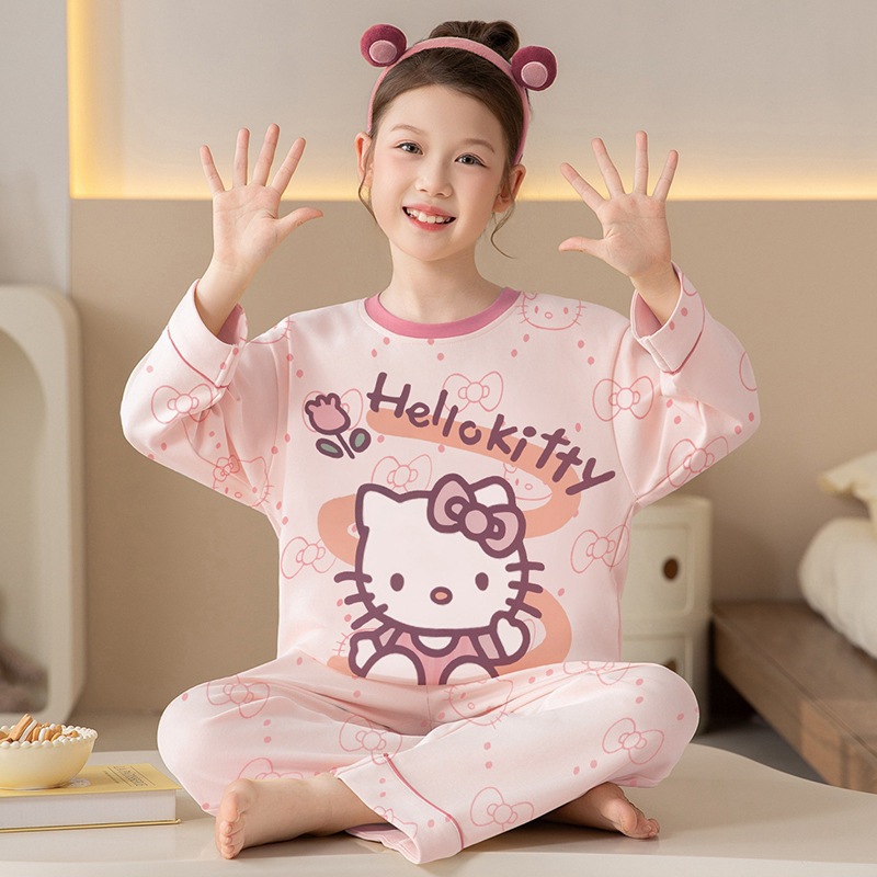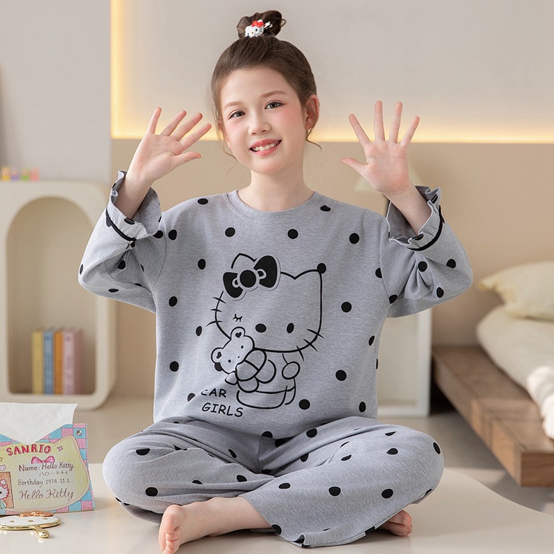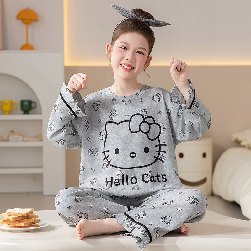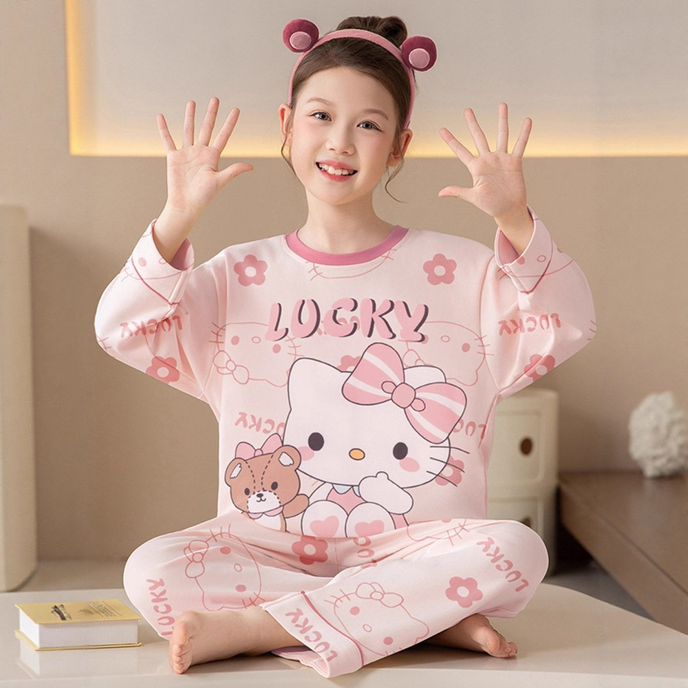 쿠로미 순면 아동 잠옷 여아 가을 라운드넥 긴팔 만화 캐릭터 중대형 어린이 공주 소녀 홈웨어 12