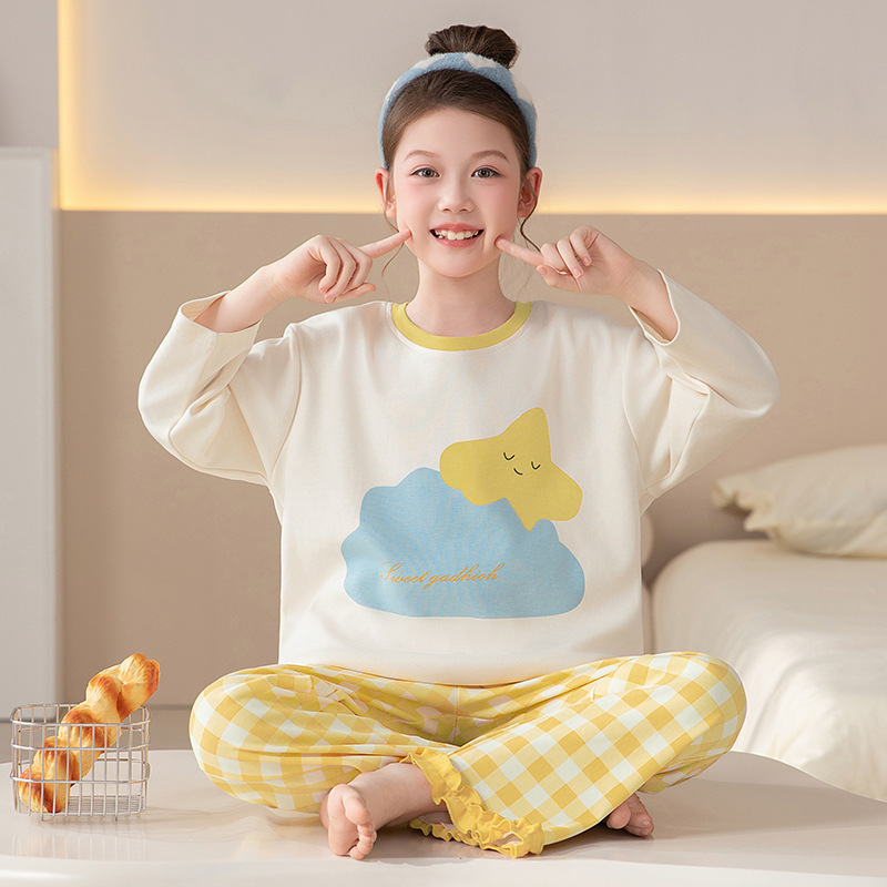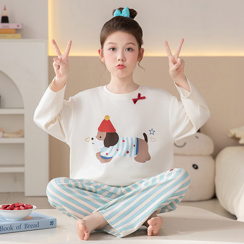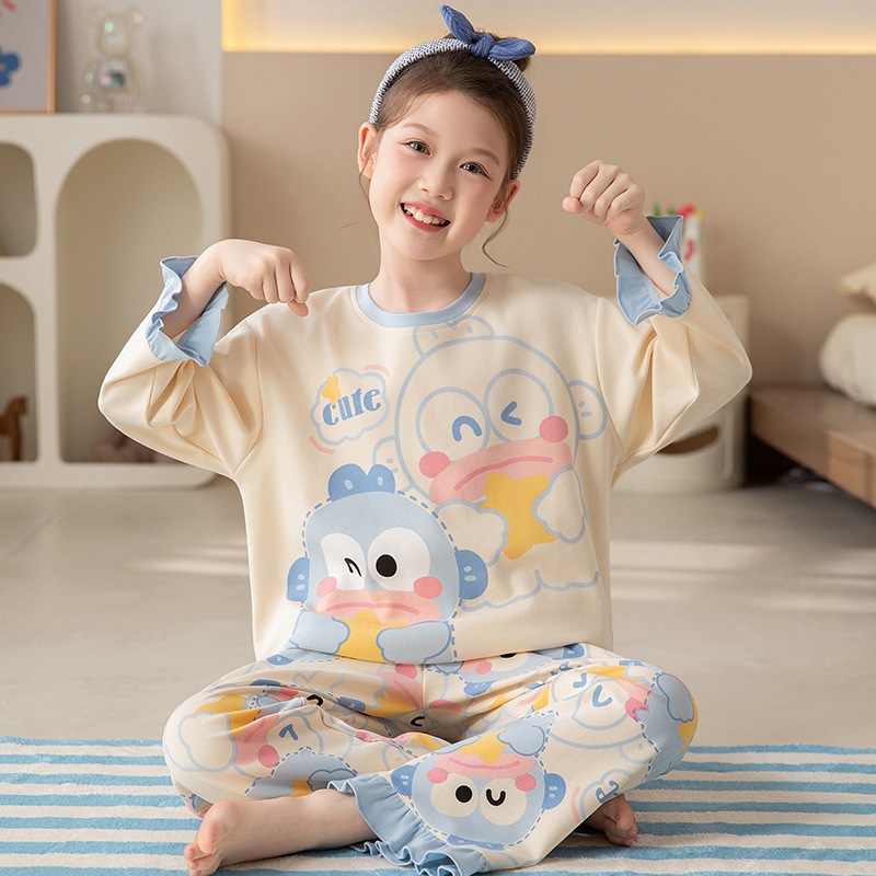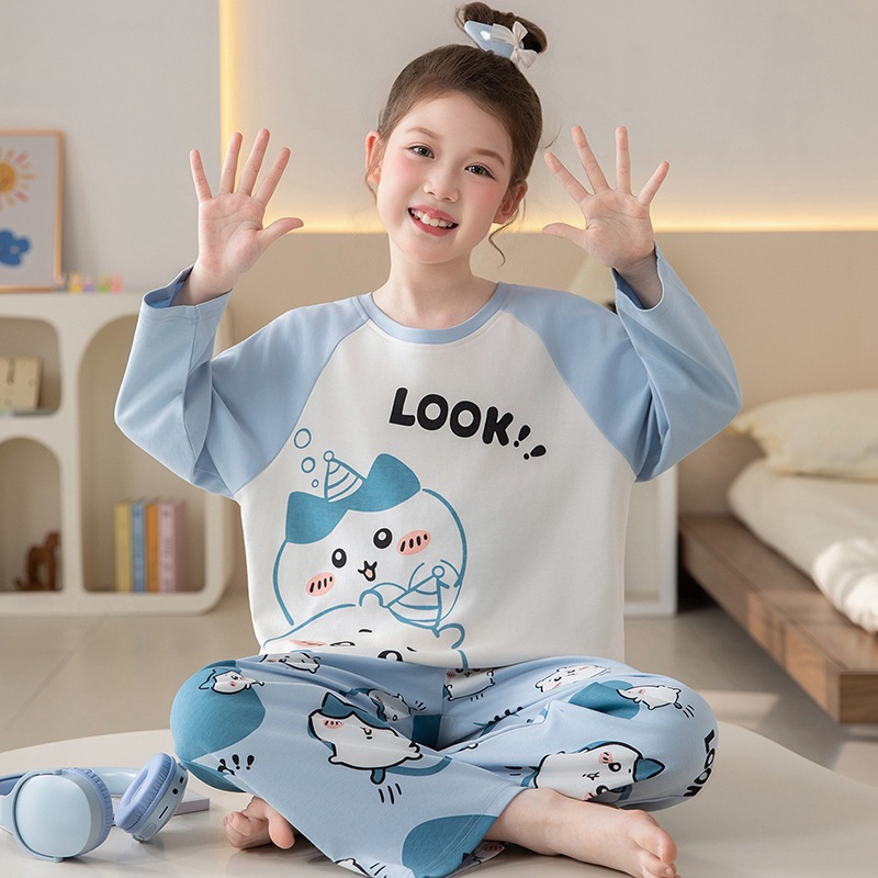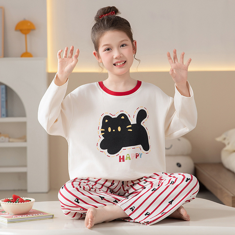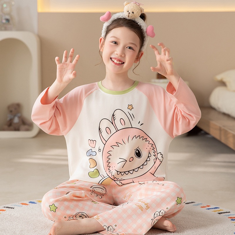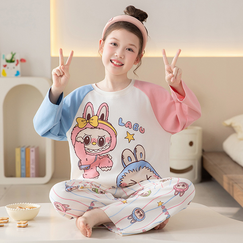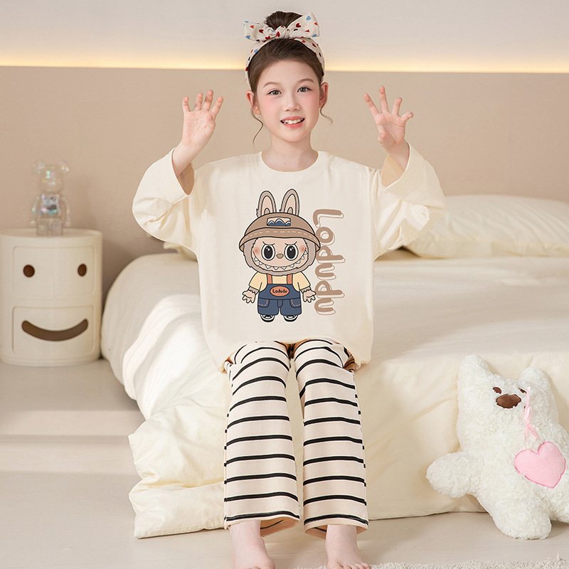 쿠로미 순면 아동 잠옷 여아 가을 라운드넥 긴팔 만화 캐릭터 중대형 어린이 공주 소녀 홈웨어 12