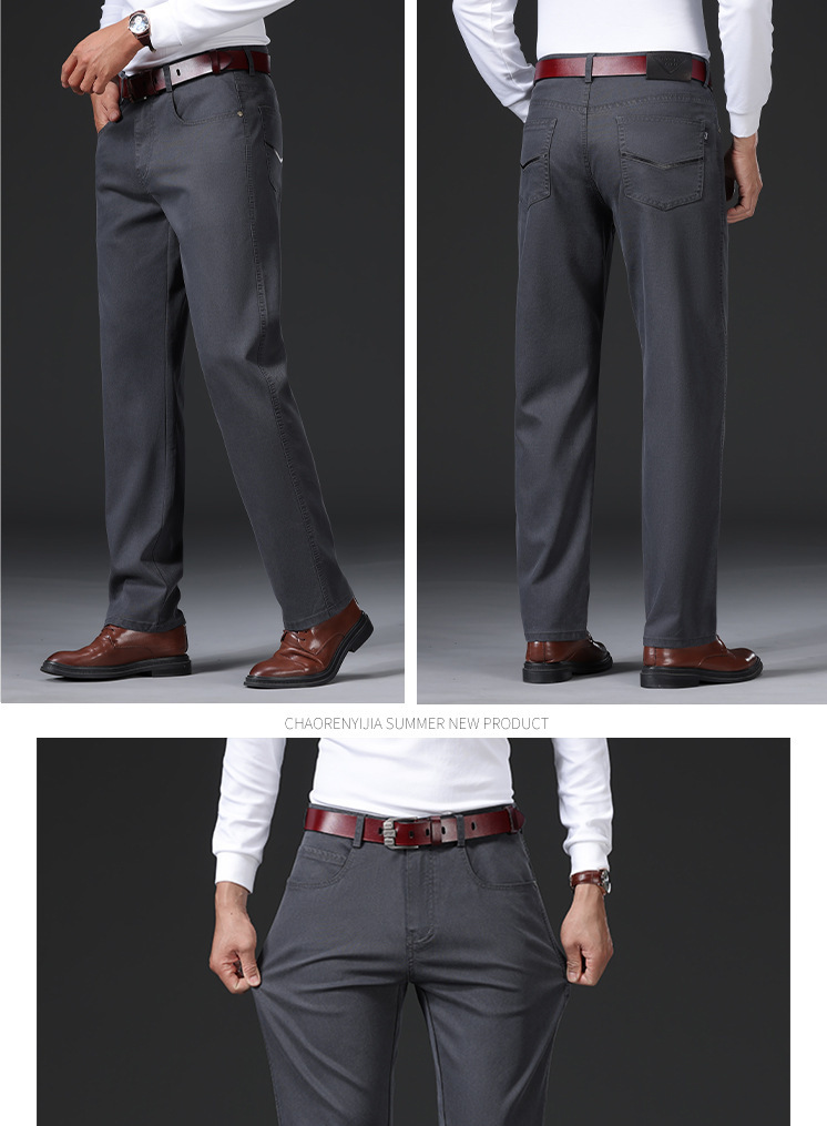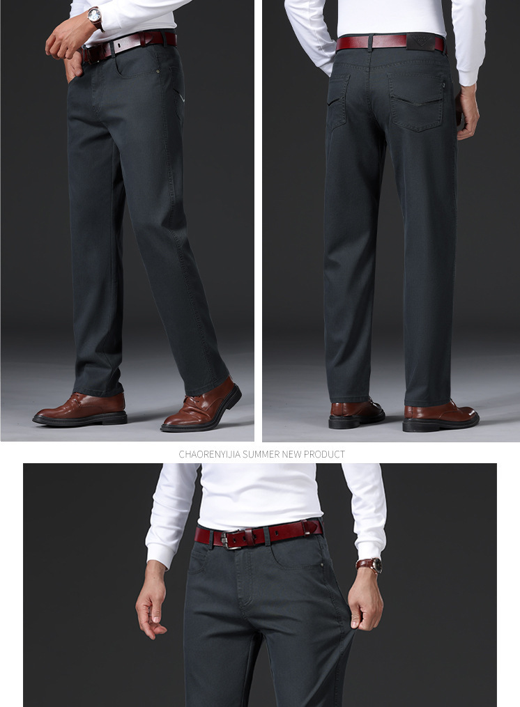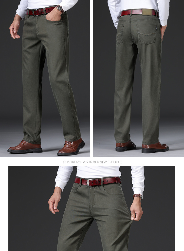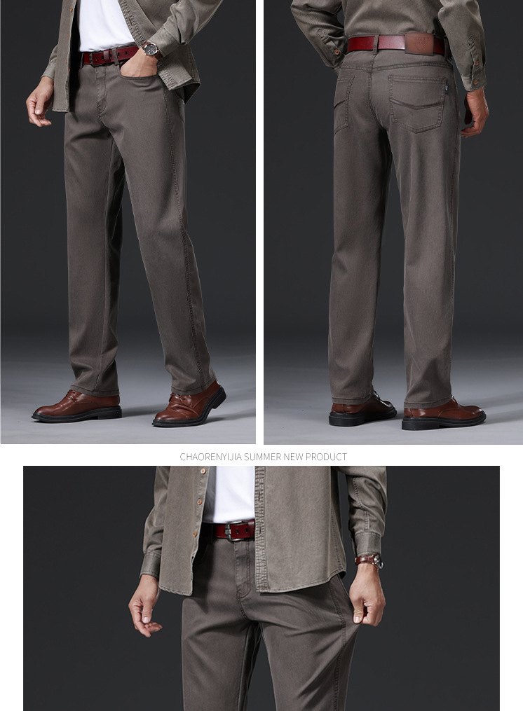 가을 겨울 브랜드 스트레이트 텐셀 캐주얼 팬츠 남성용 루즈핏 비즈니스 신축성 다용도 단색 남성 바지 두꺼운 모델 J7062