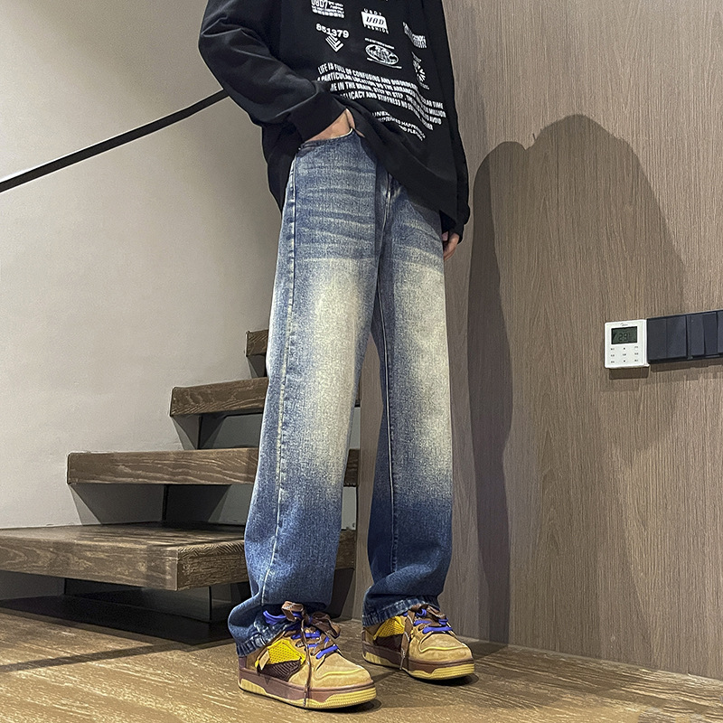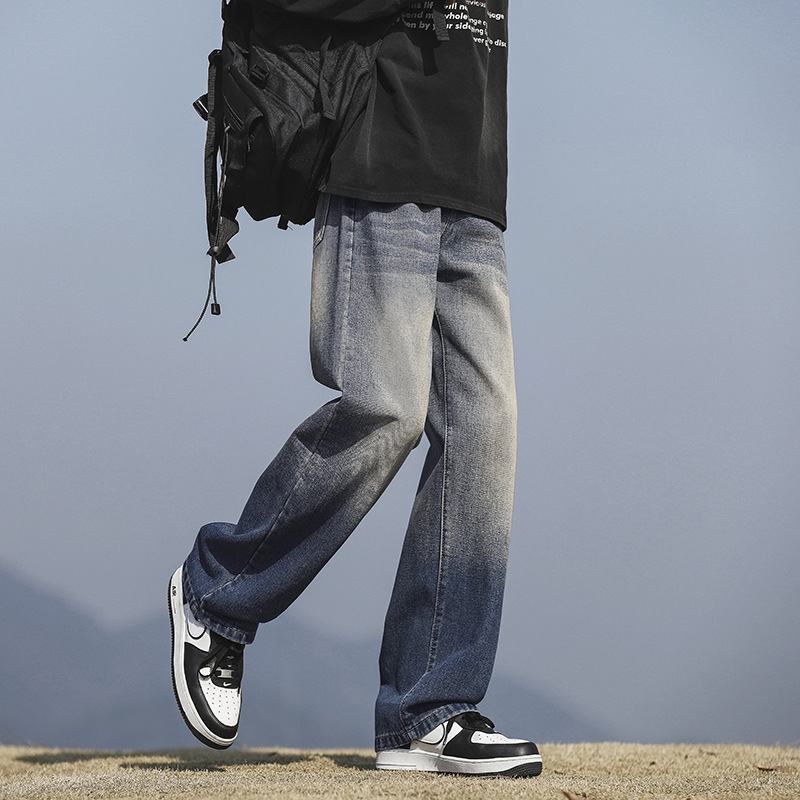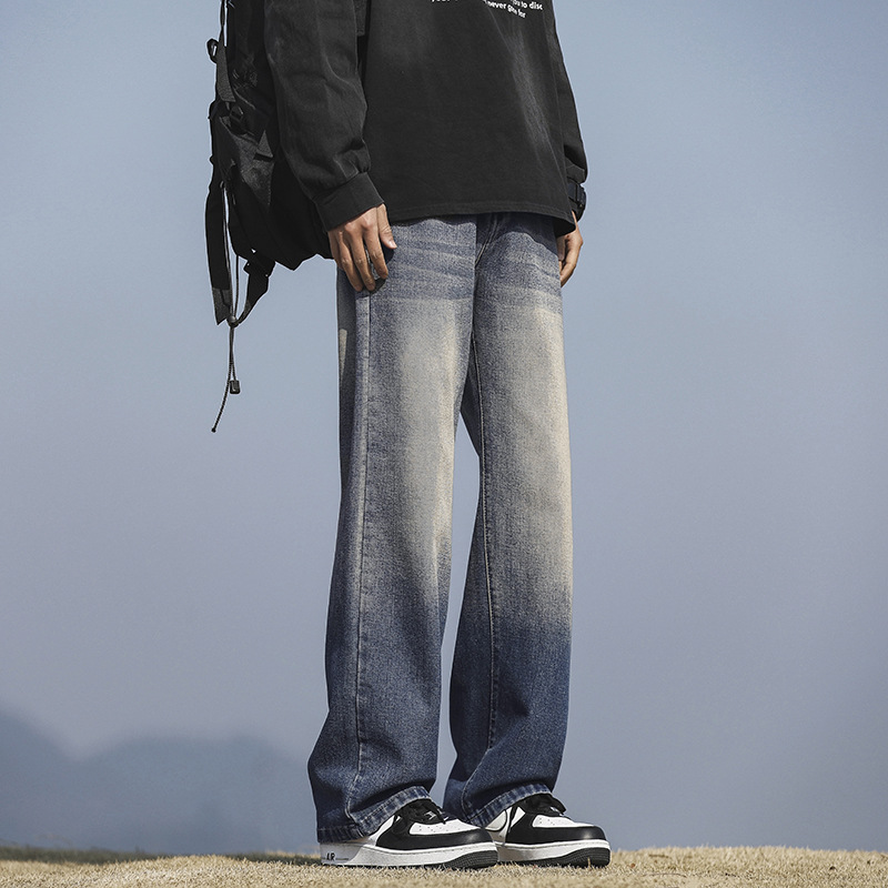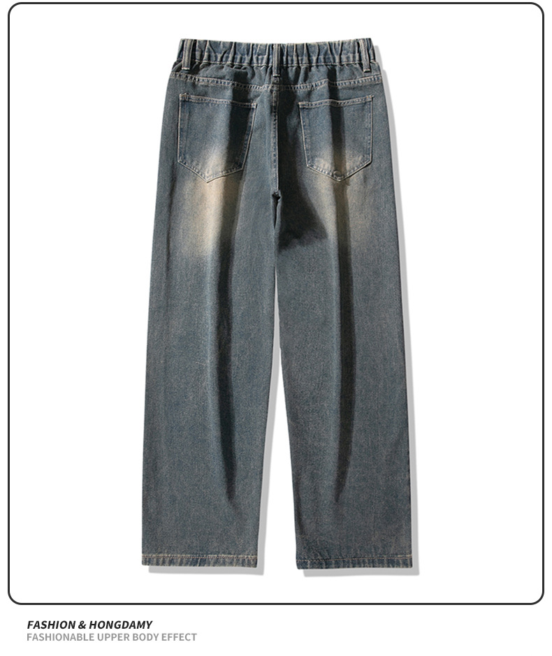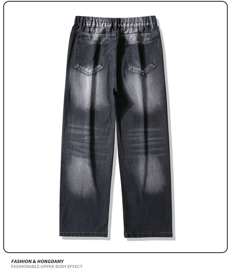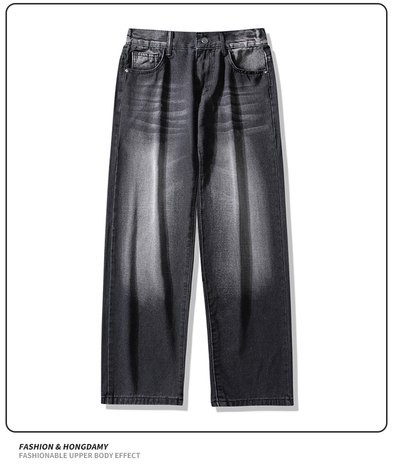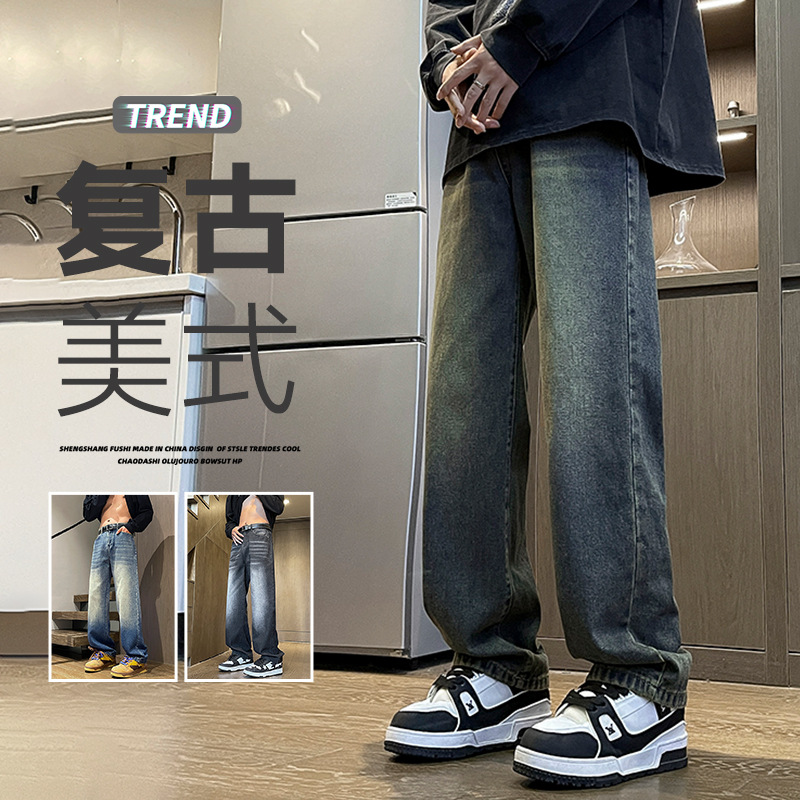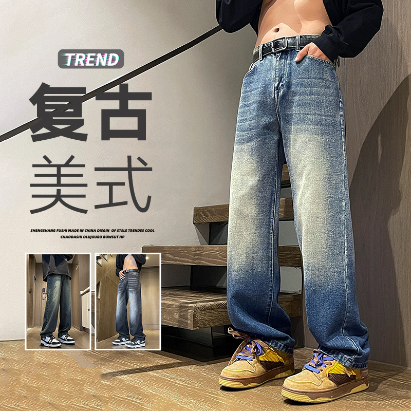 미국 스타일 하이 스트리트 청바지 남성용 봄 가을 신상 트렌디 브랜드 워싱 레트로 루즈핏 와이드 팬츠 남성용 스트레이트 팬츠스토어 가기