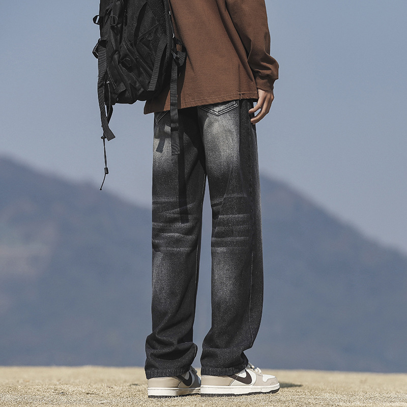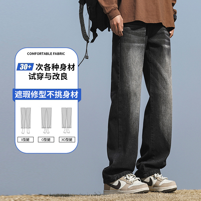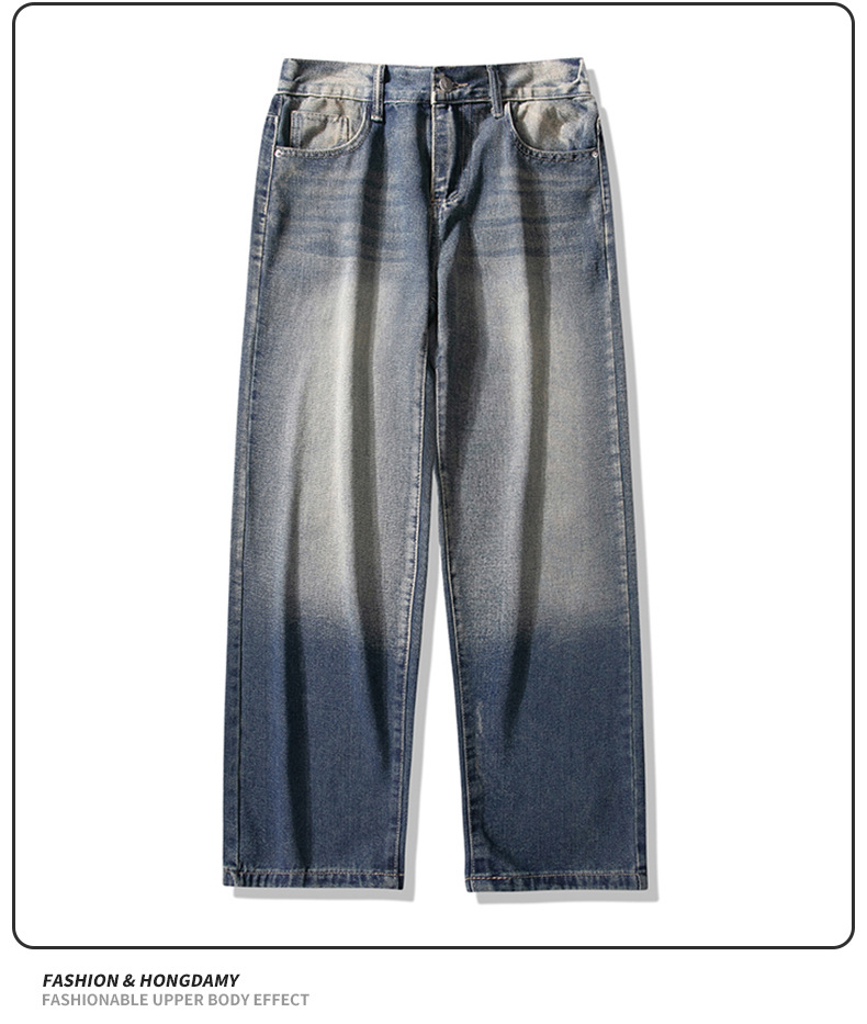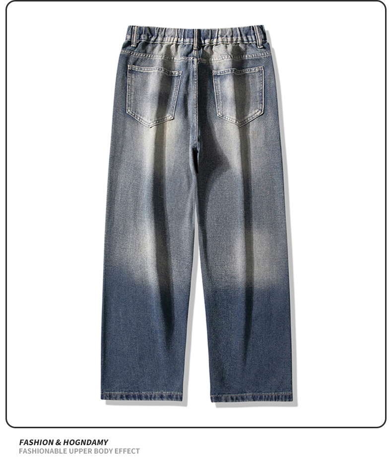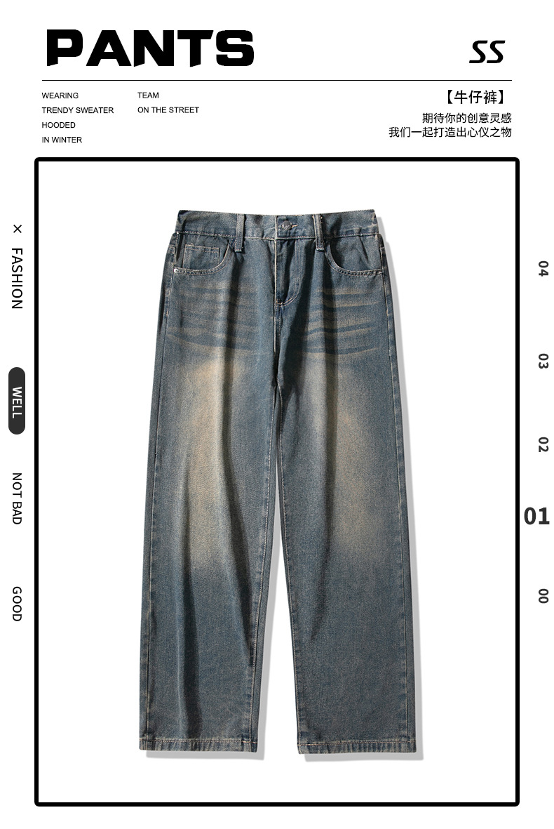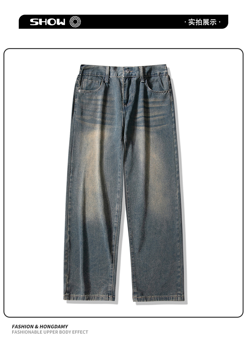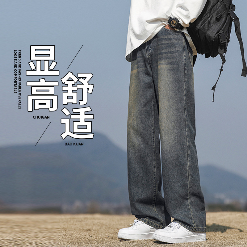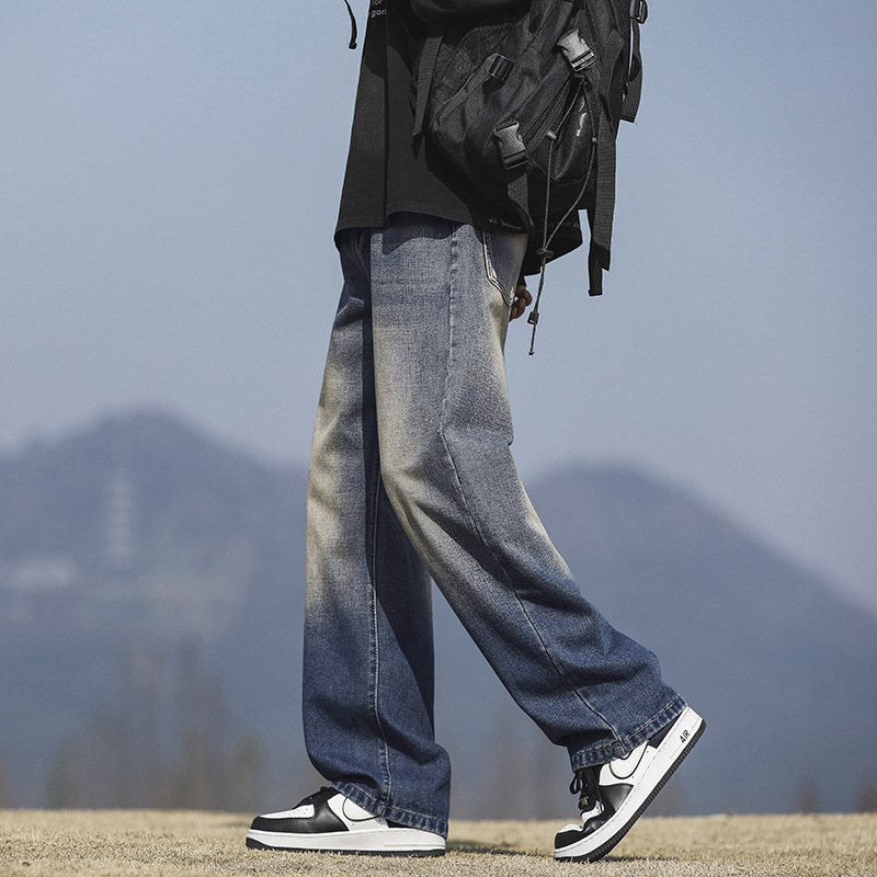 미국 스타일 하이 스트리트 청바지 남성용 봄 가을 신상 트렌디 브랜드 워싱 레트로 루즈핏 와이드 팬츠 남성용 스트레이트 팬츠스토어 가기