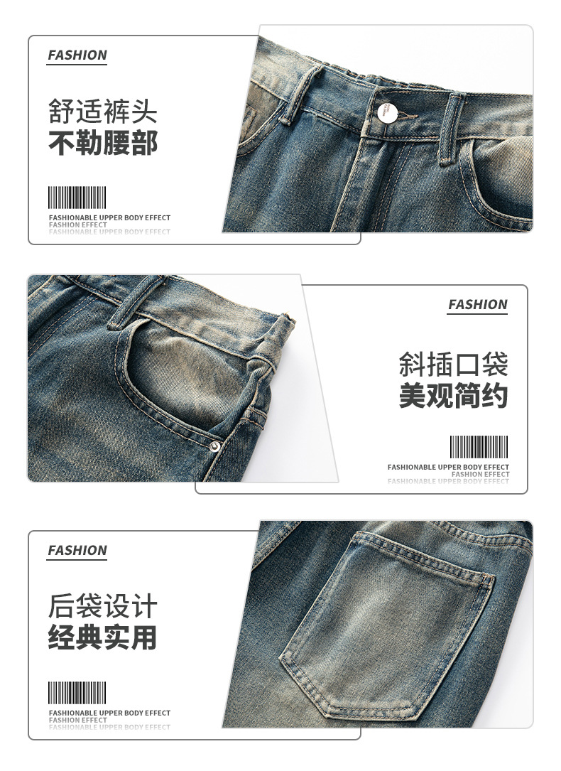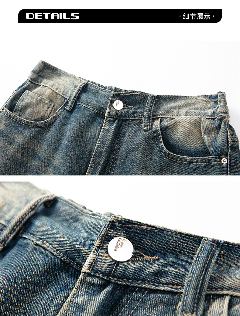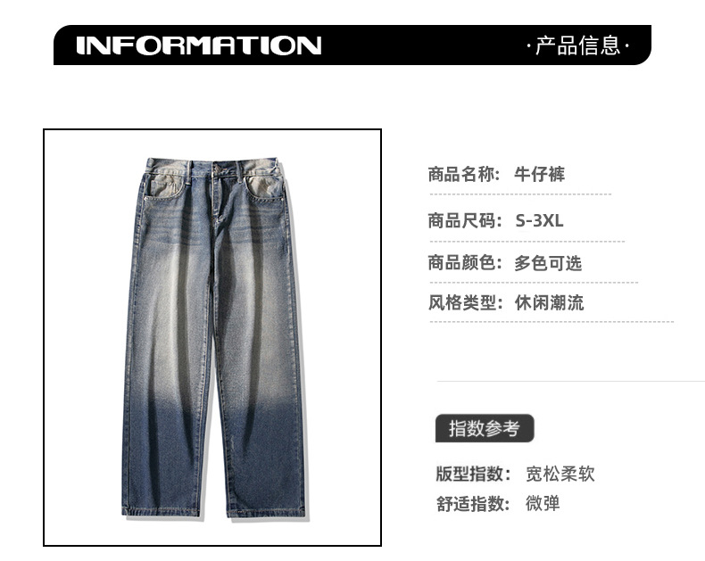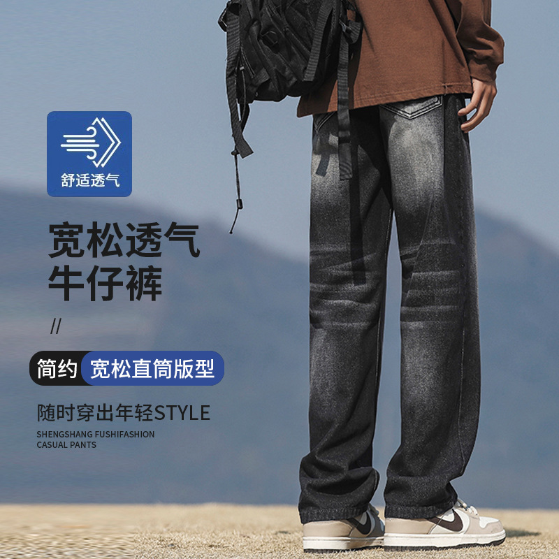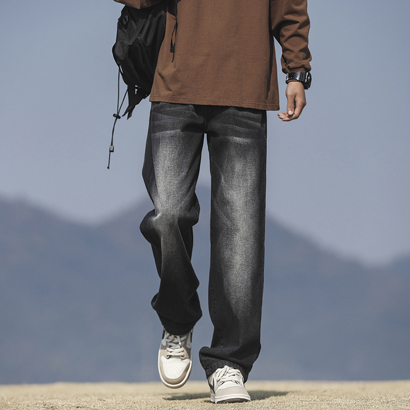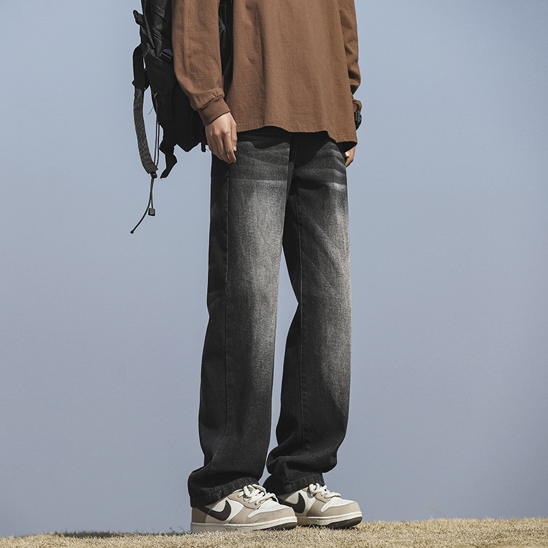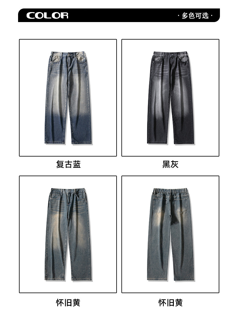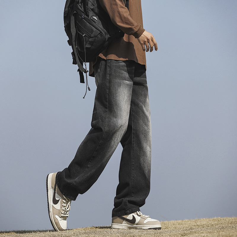 미국 스타일 하이 스트리트 청바지 남성용 봄 가을 신상 트렌디 브랜드 워싱 레트로 루즈핏 와이드 팬츠 남성용 스트레이트 팬츠스토어 가기