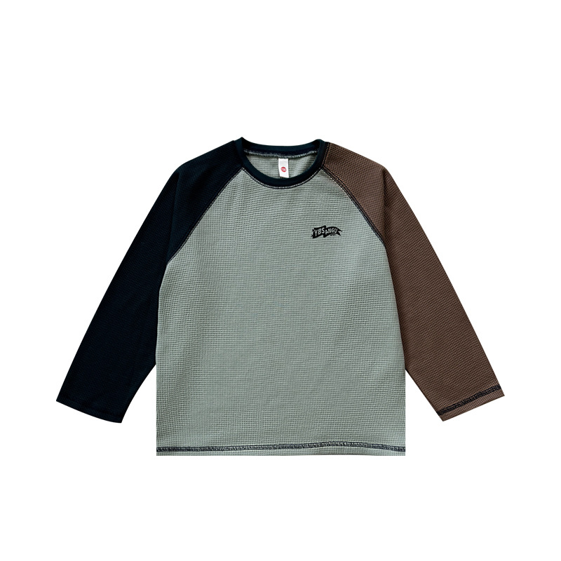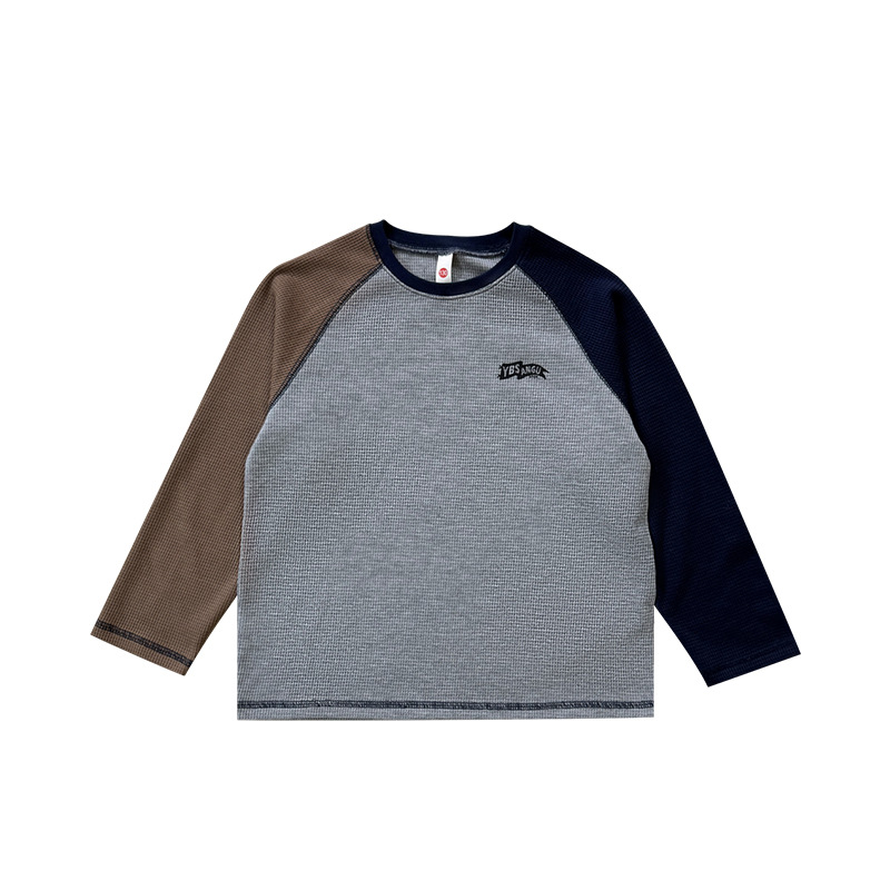 산악 캠핑 스타일 아동 와플 긴팔 상의 2026 두꺼운 남아 배색 래글런 긴팔 아기 티셔츠