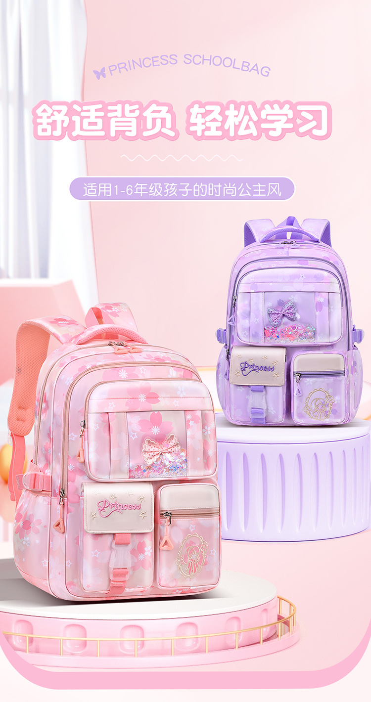 어린이 학교 가방 초등학생 1-3-6 학년 소녀 귀여운 패션 달콤한 소녀 대용량 라이트 숄더 백스토어 가기