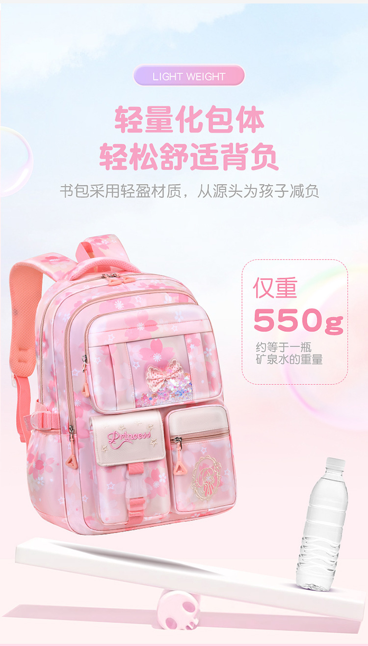어린이 학교 가방 초등학생 1-3-6 학년 소녀 귀여운 패션 달콤한 소녀 대용량 라이트 숄더 백