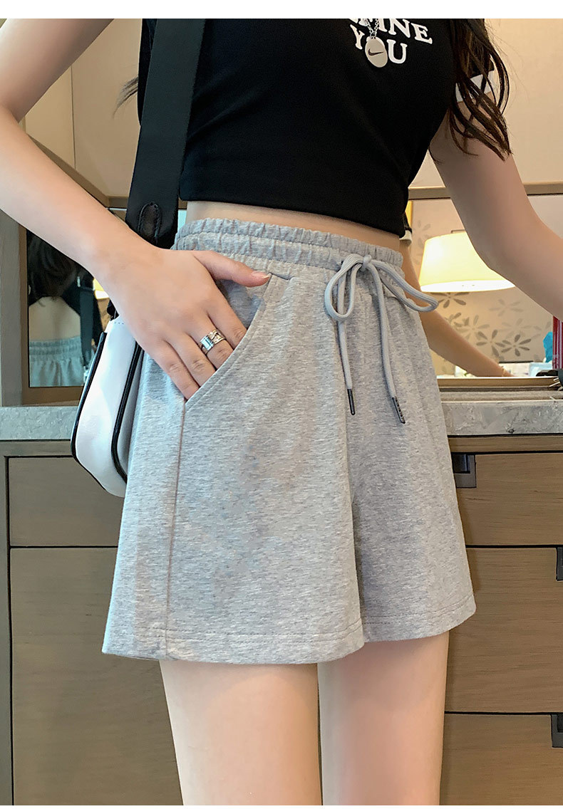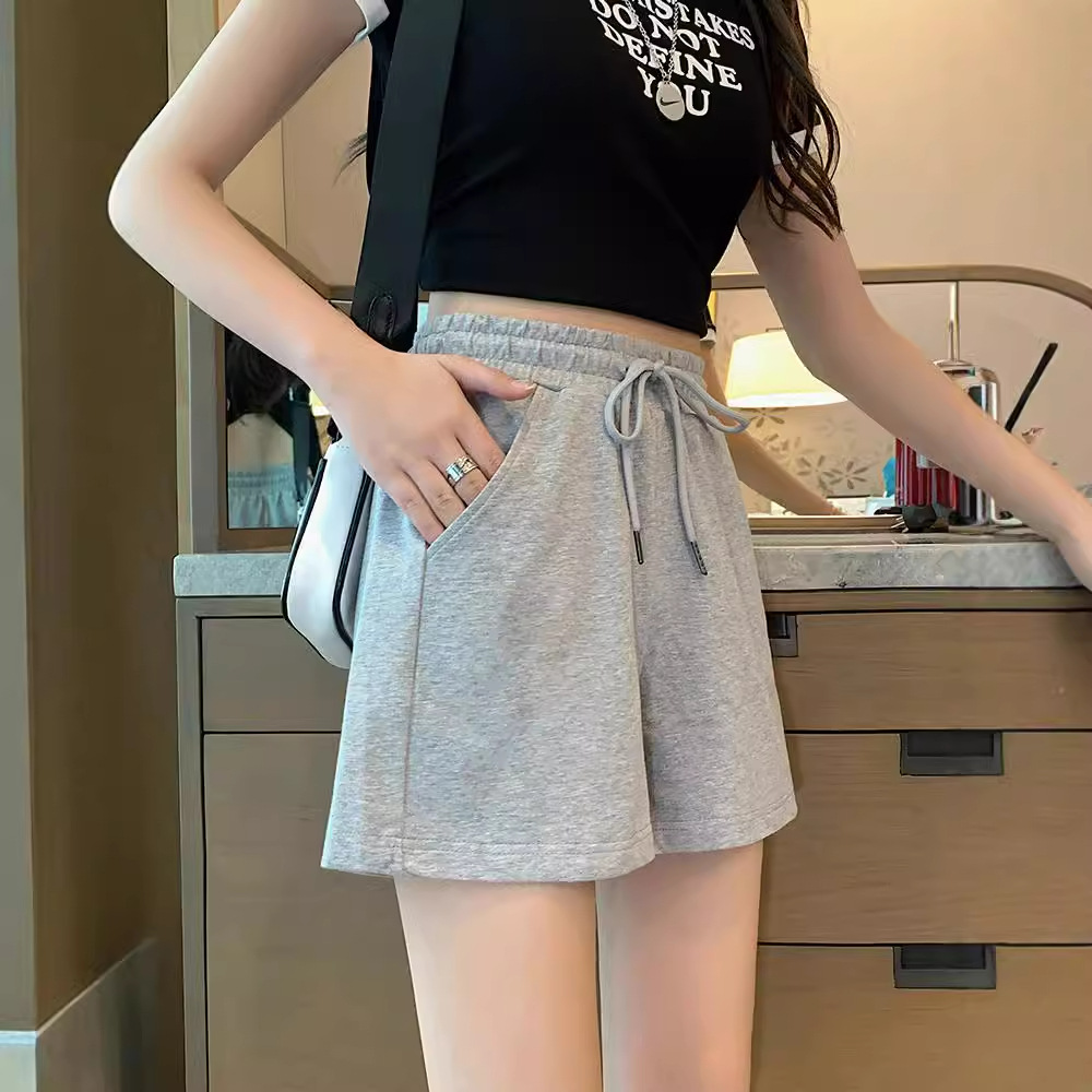 블랙 스포츠 반바지 여름 여성의 새로운 얇은 느슨한 와이드 레그 트리플 바지 달리기 캐주얼 A 자형 외부 착용스토어 가기