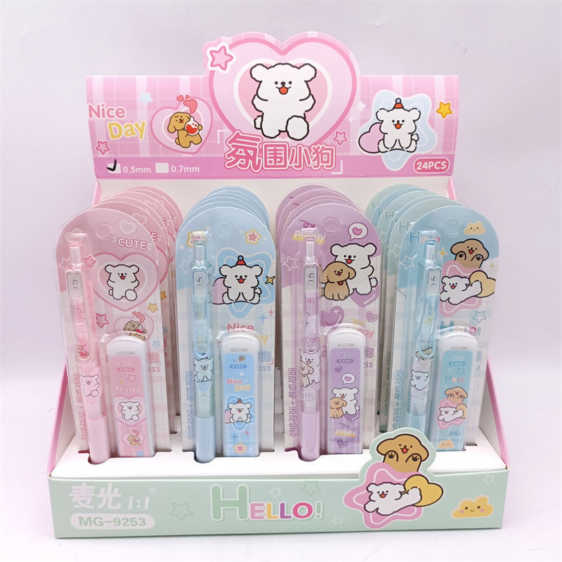 인터넷 축하 새로운 라인 강아지 자동 연필 세트 학생 높은 컬러 값 쓰기 부드러운 필기 명확한 연필