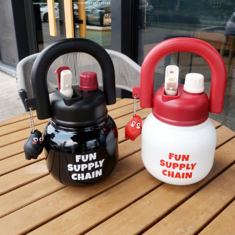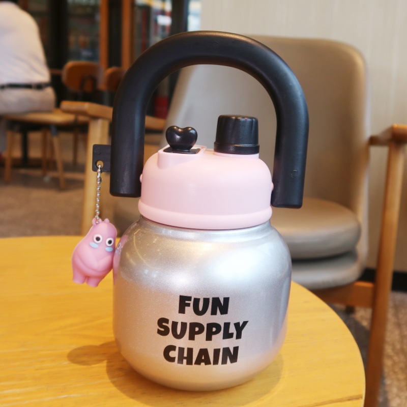 운반 냄비 두 배 마시는 입 높은 색 가치 대용량 밀짚 휴대용 소녀 빅 벨리 컵 공간 톤 보온병 새로운 스타일