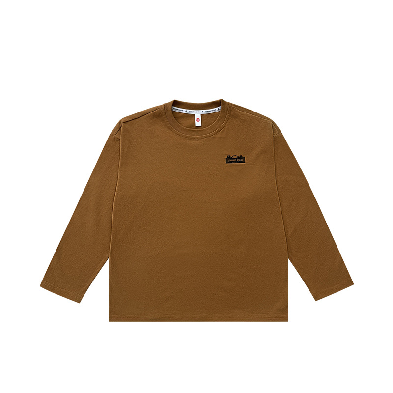 Yuebaoshe 산 시리즈 아동복 2025 가을 신작 아동 프린트 오프 숄더 긴팔 티셔츠 베이비 퓨어 코튼 기모 탑