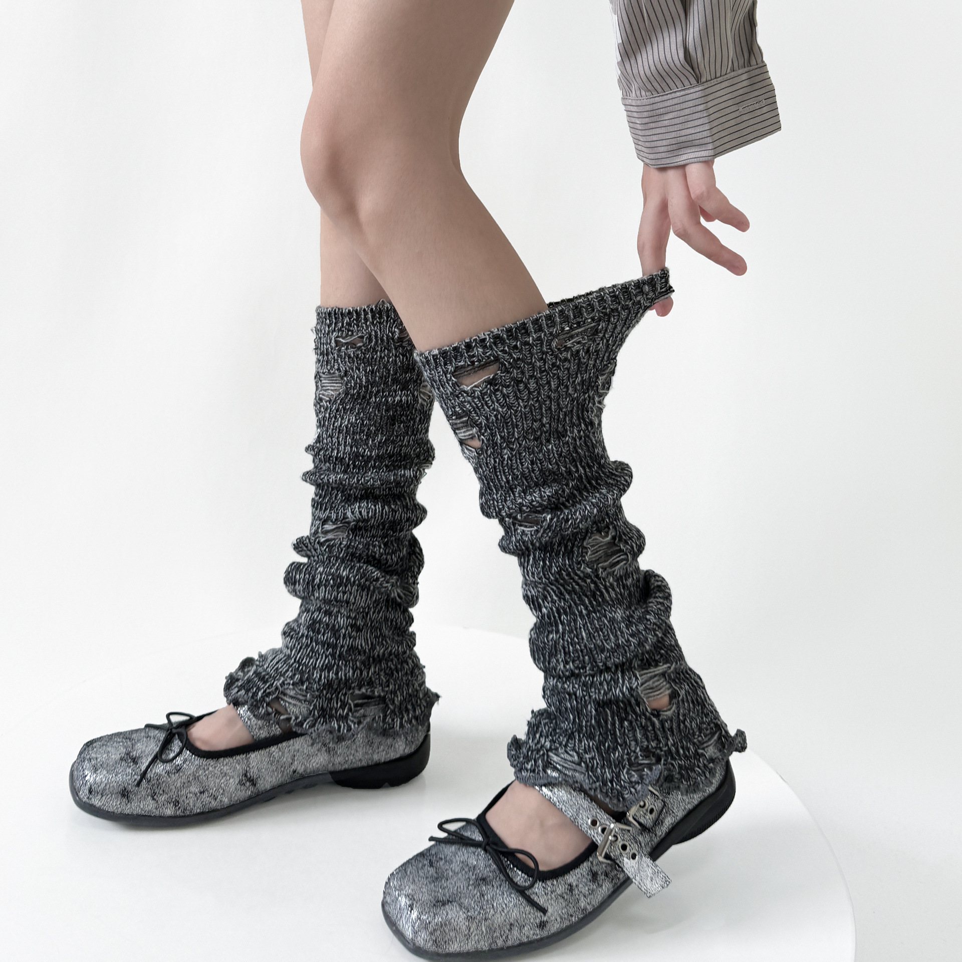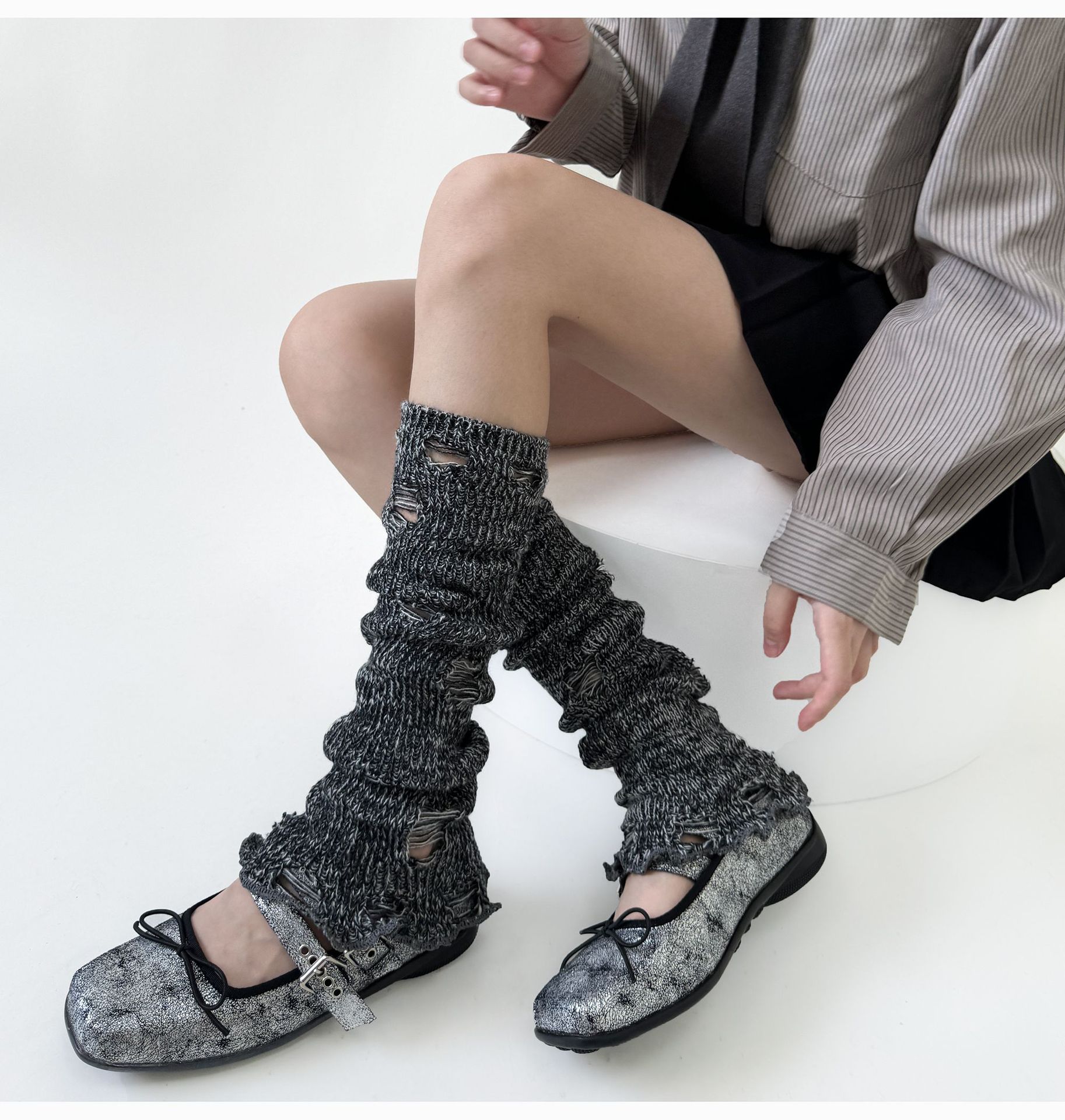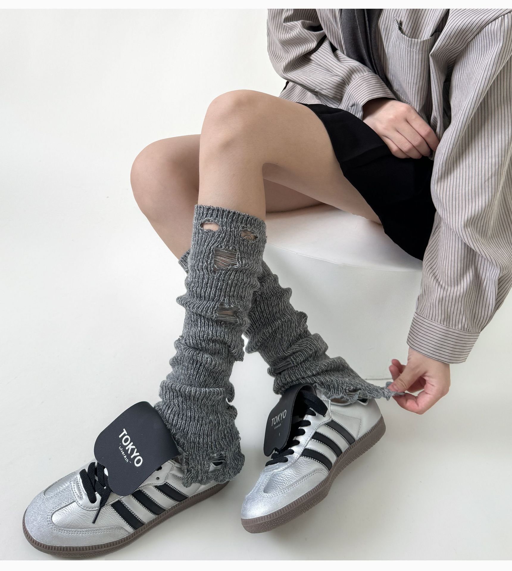 가을과 겨울 찢어진 다리 커버 여성 한국 스타일 트렌디 신 양말 디자인 센스 다리 보호 양말 따뜻한 올매치 우드 이어 양말