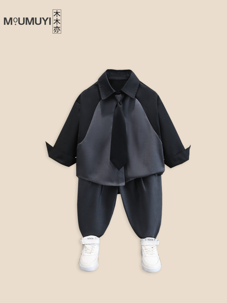 Piushuai 소년 정장 정장 봄 2025 새로운 소년 드레스 어린이 캐주얼 셔츠 3 피스 트렌디 세트스토어 가기