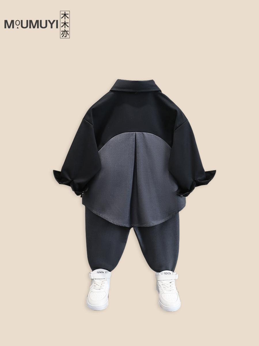 Piushuai 소년 정장 정장 봄 2025 새로운 소년 드레스 어린이 캐주얼 셔츠 3 피스 트렌디 세트