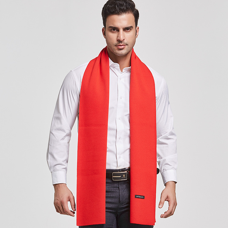 겨울 대외 무역 양모 스카프 남자 단색 한국어 버전 따뜻한 스카프 비즈니스 빨간색 선물 스카프 도매 제조 업체