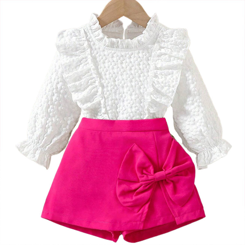 아마존 유럽과 미국의 가을과 겨울 새로운 소녀 세트 어린이 랜턴 소매 긴 소매 활 바지 스커트 투피스 세트