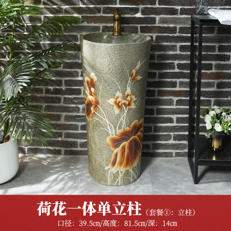 세라믹 기둥 분지 바닥 서 통합 워시 분지 야외 코트야드 발코니 빈티지 워시 분지 가정용 워시 분지