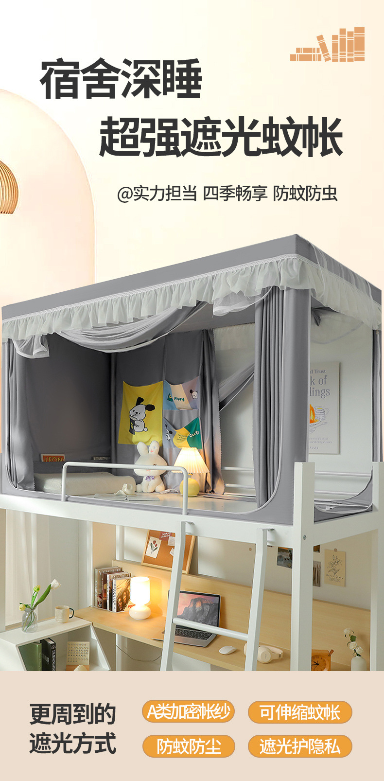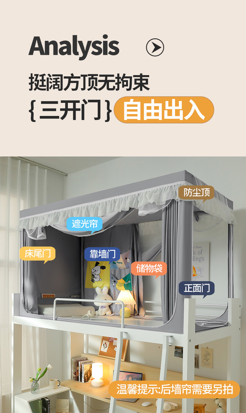 새로운 학생 모기장 단일 기숙사 침대 커튼 통합 강력한 음영 클래스 브래킷이있는 상하 벤트 음영 커튼스토어 가기