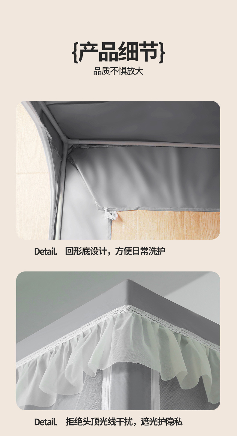 새로운 학생 모기장 단일 기숙사 침대 커튼 통합 강력한 음영 클래스 브래킷이있는 상하 벤트 음영 커튼