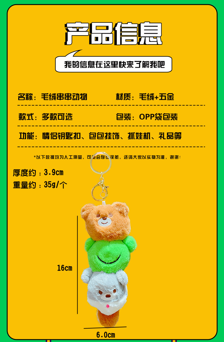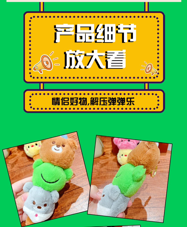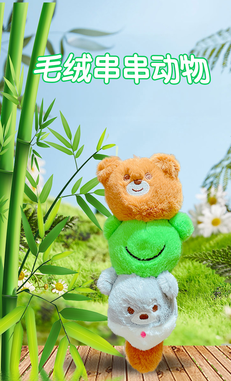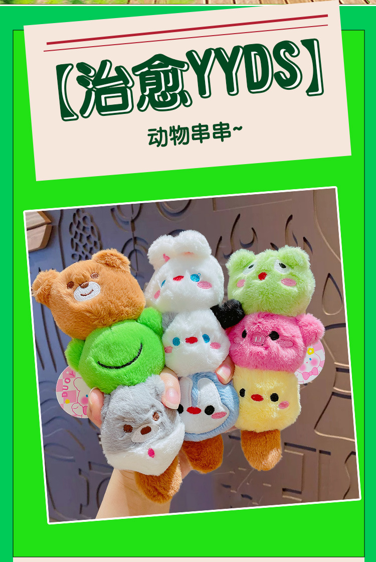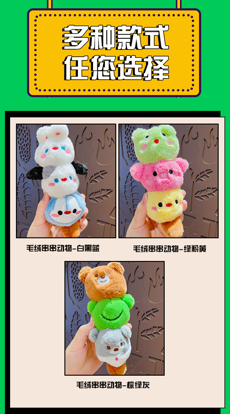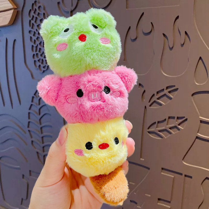 • 봉제 끈 동물 - 녹색, 분홍색, 노란색