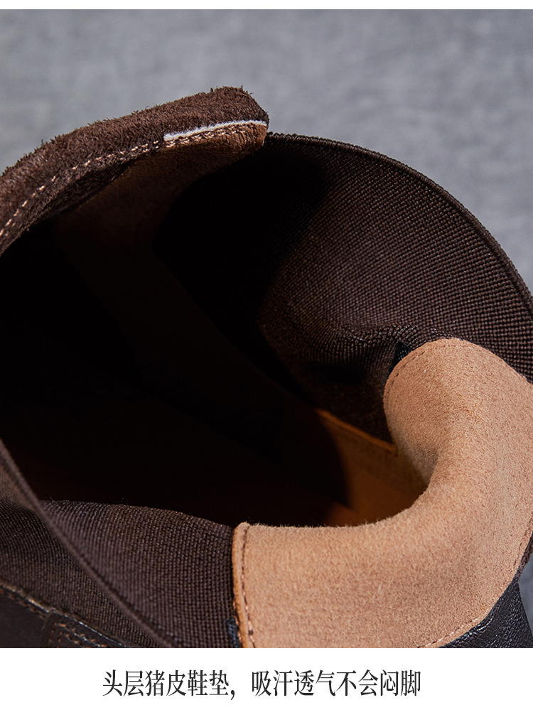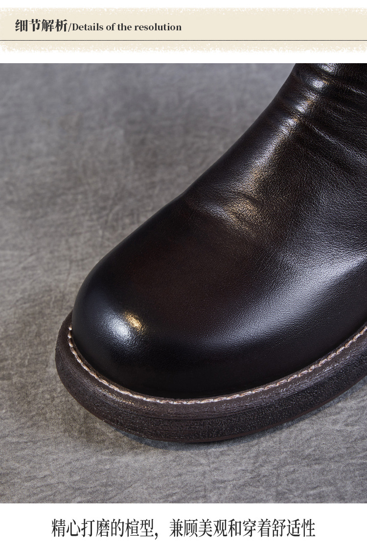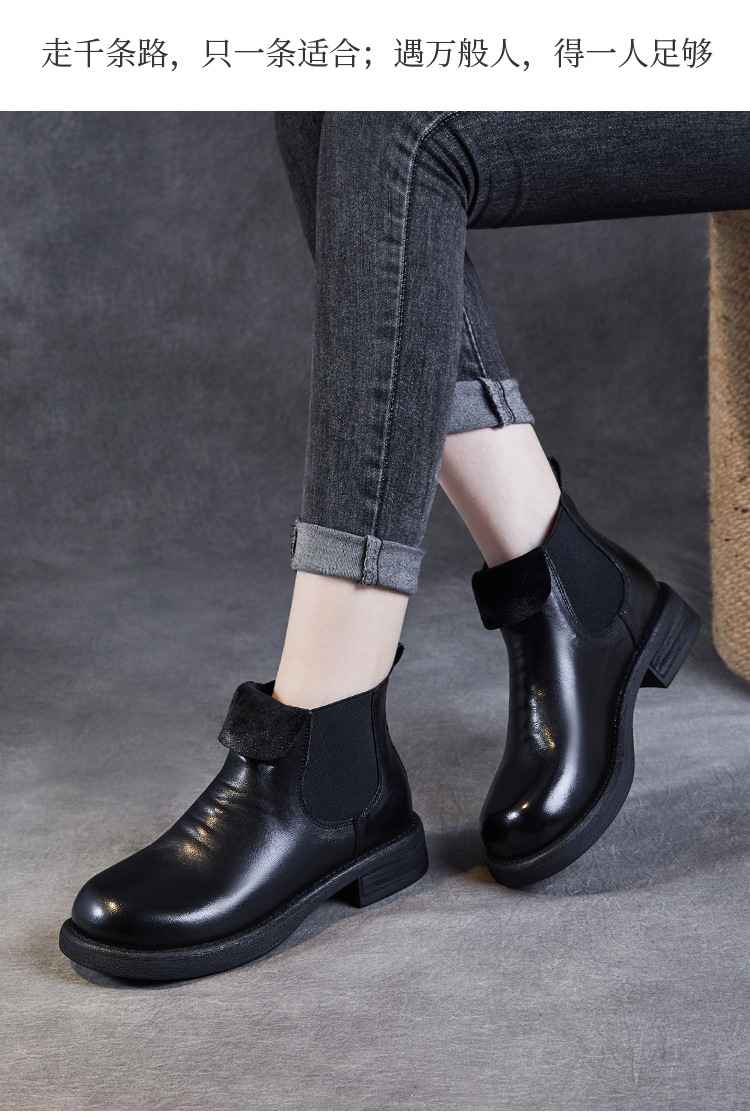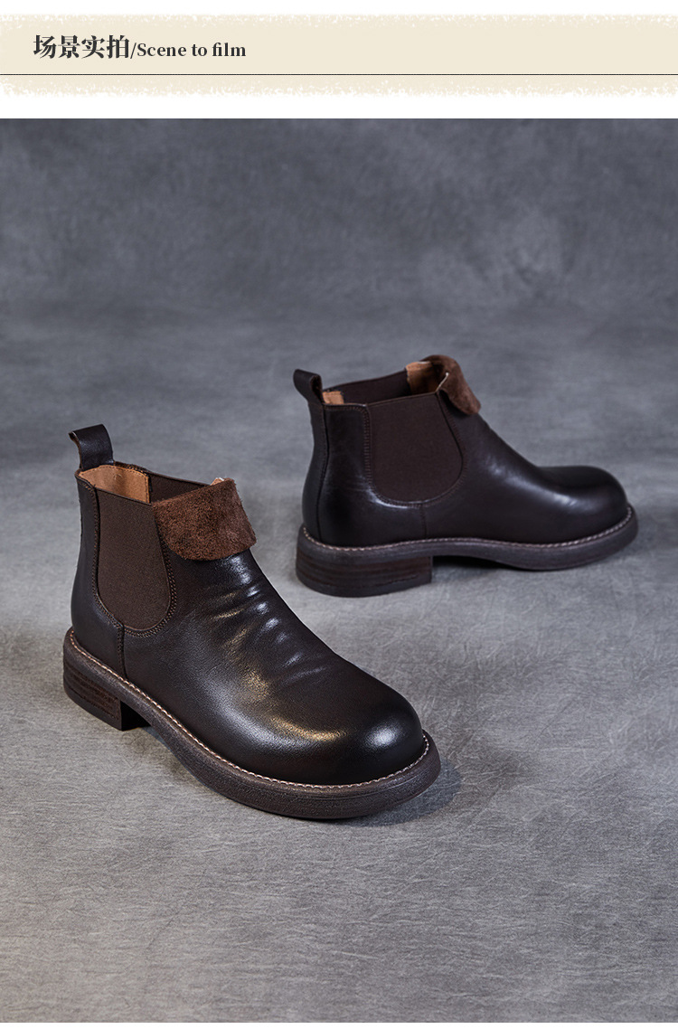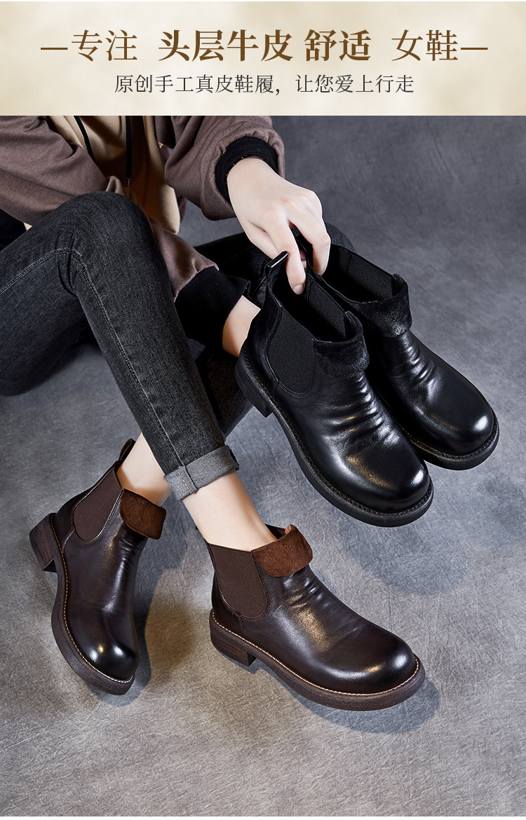 워시 드 카 가죽 골동품 첼시 발목 부츠 여성 영국 스타일 레트로 마틴 가죽 라운드 발가락 터닝 가죽 발목 부츠스토어 가기