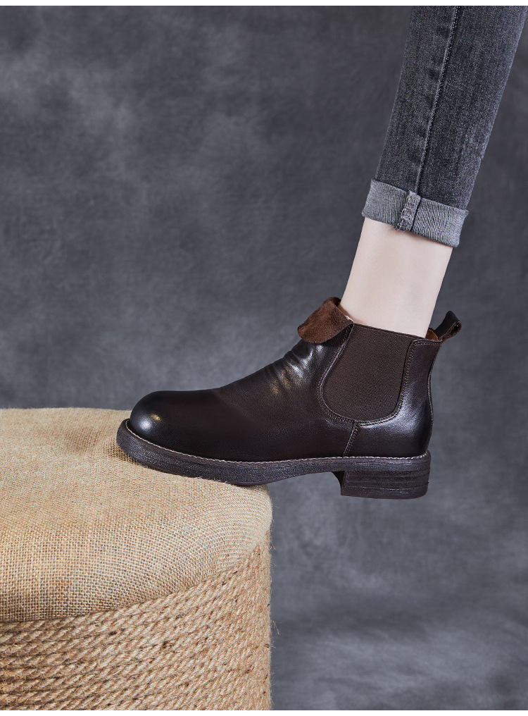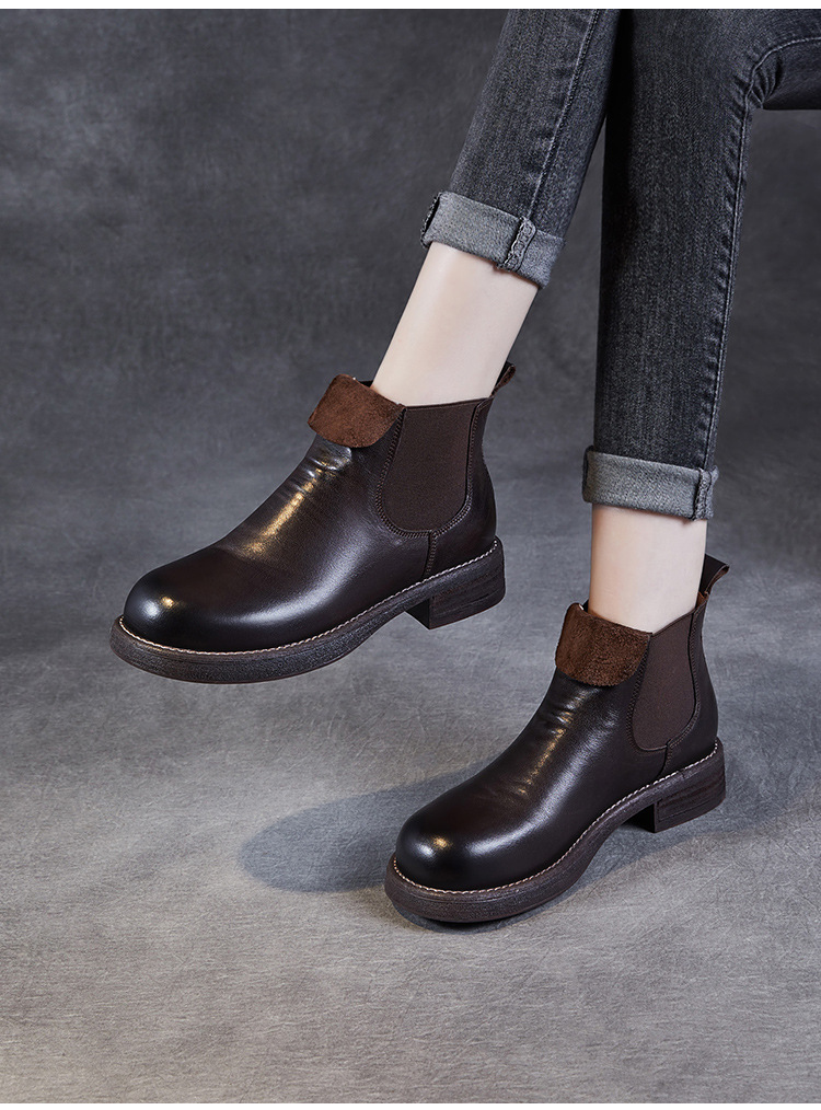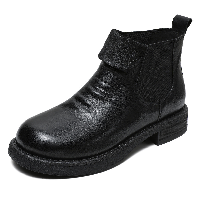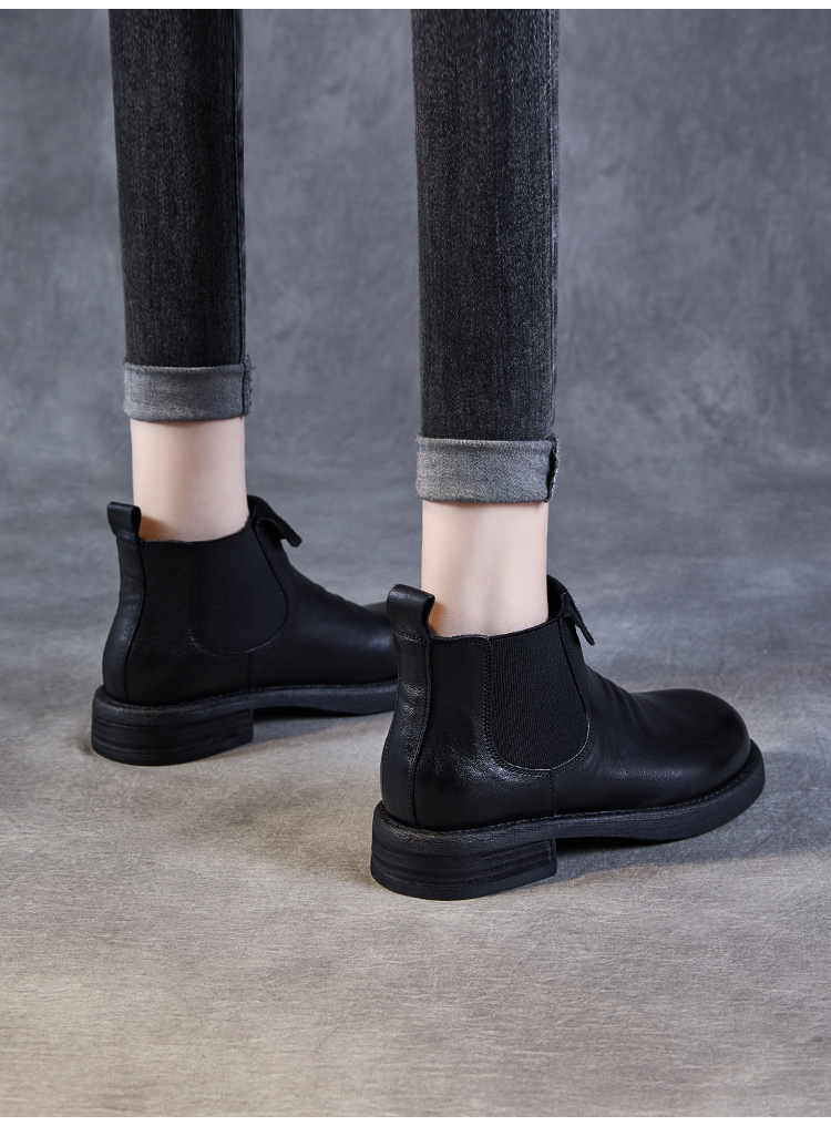 워시 드 카 가죽 골동품 첼시 발목 부츠 여성 영국 스타일 레트로 마틴 가죽 라운드 발가락 터닝 가죽 발목 부츠
