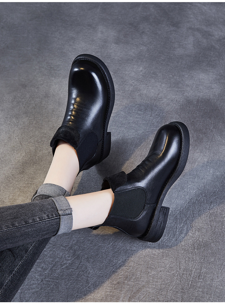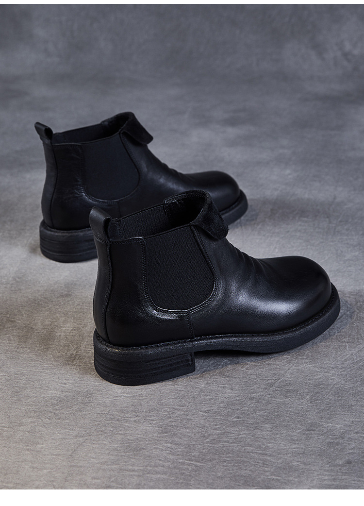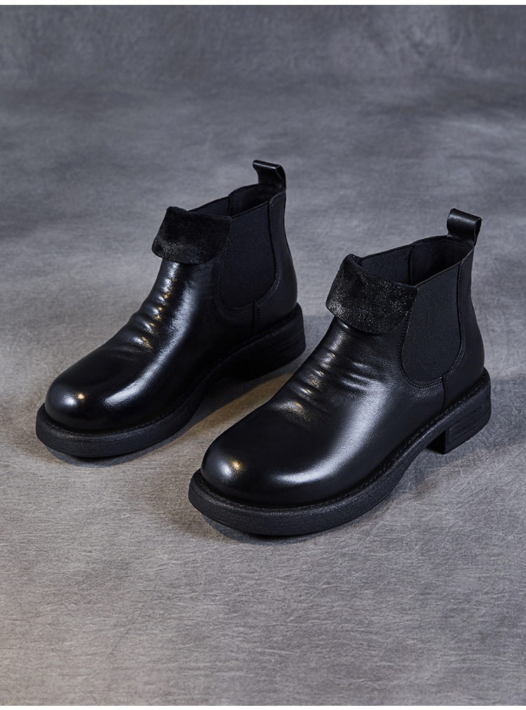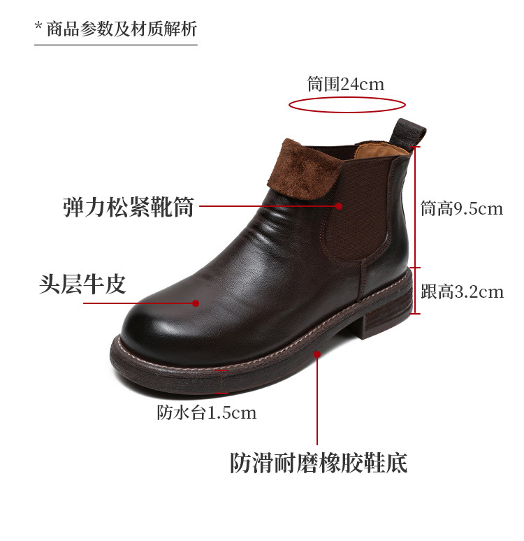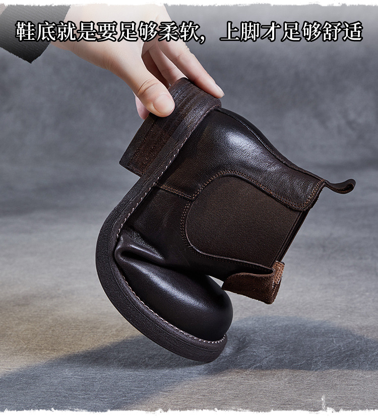 워시 드 카 가죽 골동품 첼시 발목 부츠 여성 영국 스타일 레트로 마틴 가죽 라운드 발가락 터닝 가죽 발목 부츠