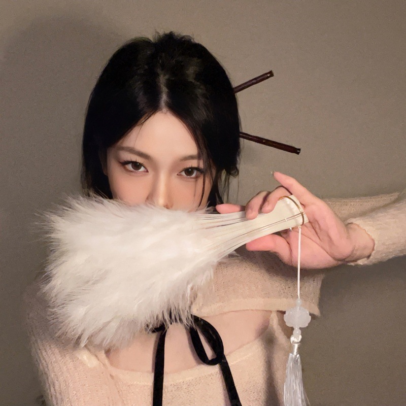 • (분위기 유물) 깃털 부채 - 펜던트가 달린 흰색