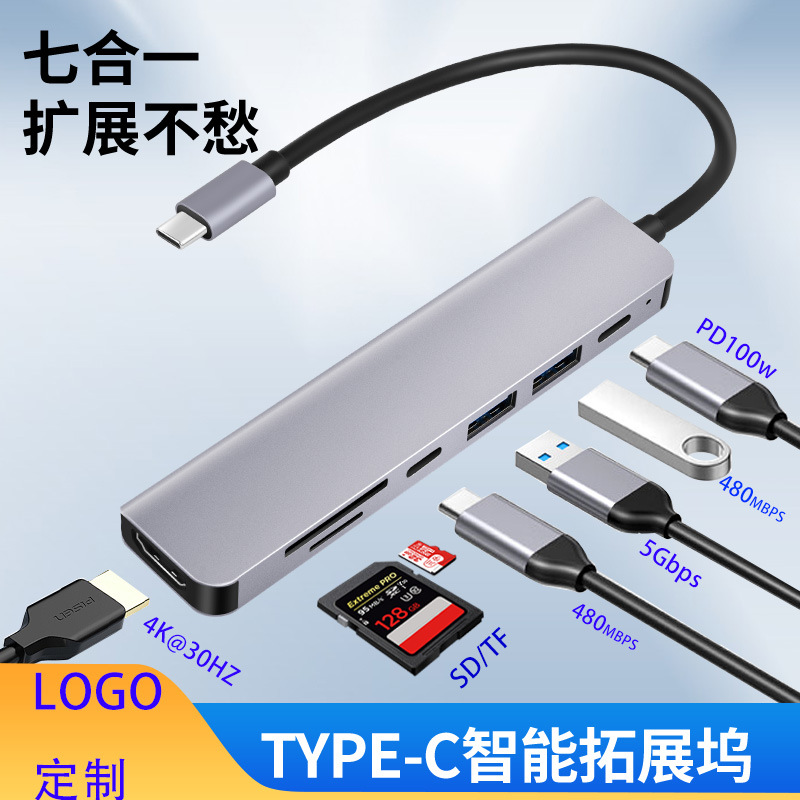 Type-c 7-in-one 도킹 스테이션 노트북 멀티 포트 익스텐더 hdtv 컨버터 3 포트 usb 허브