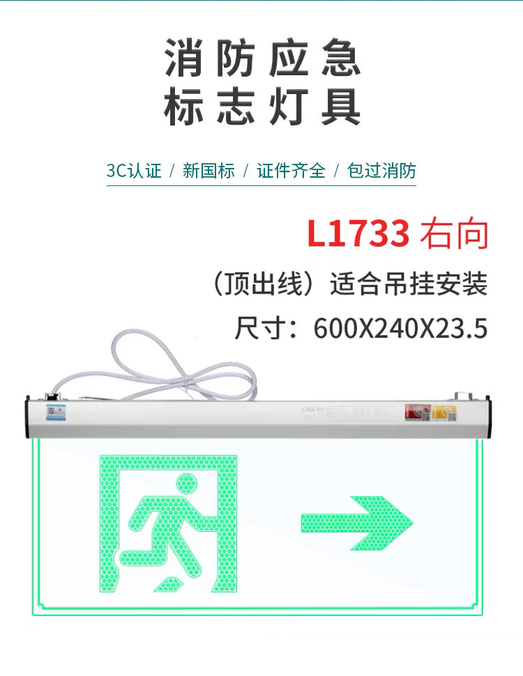 로리 3C 인증 투명 안전 출구 대피 표시기 새로운 국가 표준 LED 하이라이트 강화 유리 L1733스토어 가기