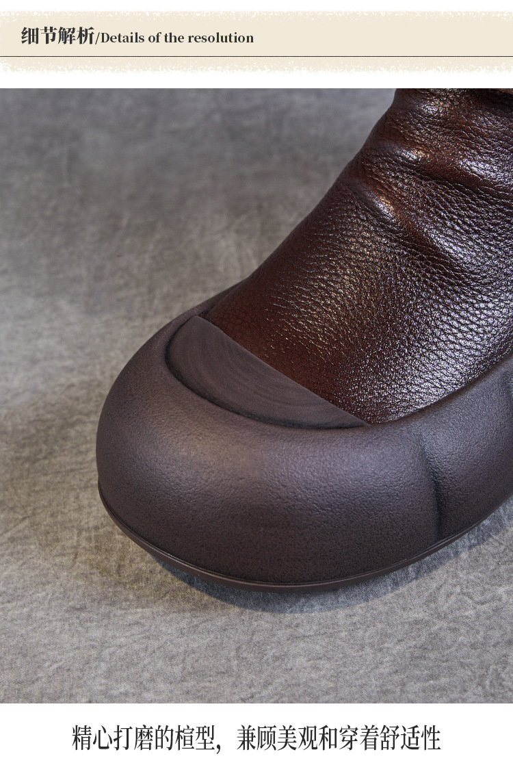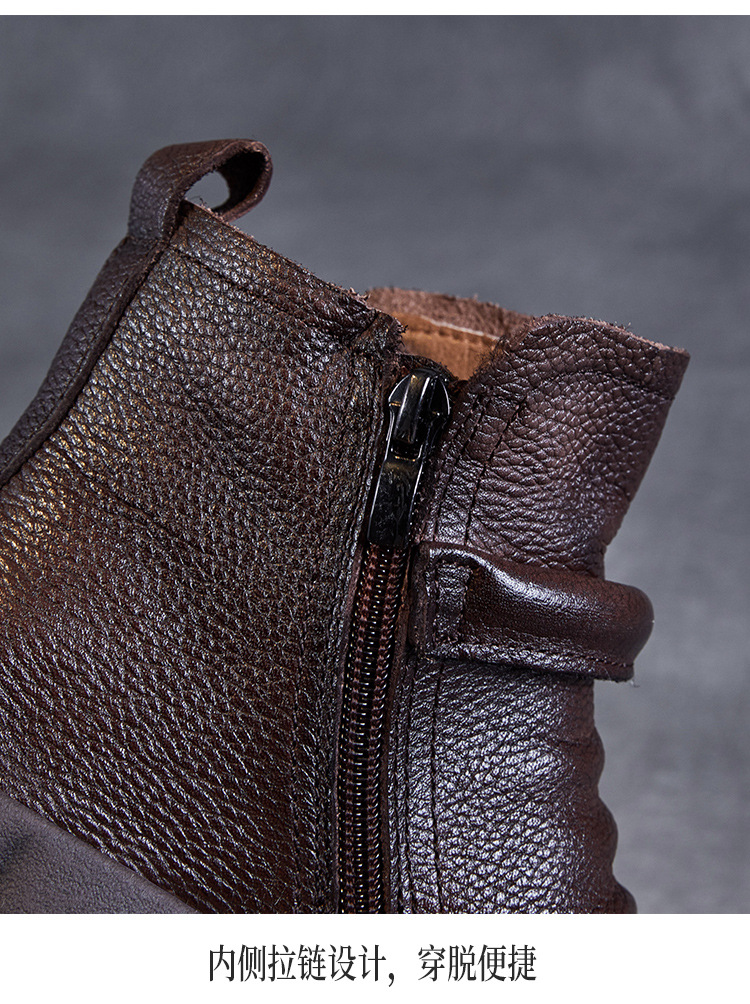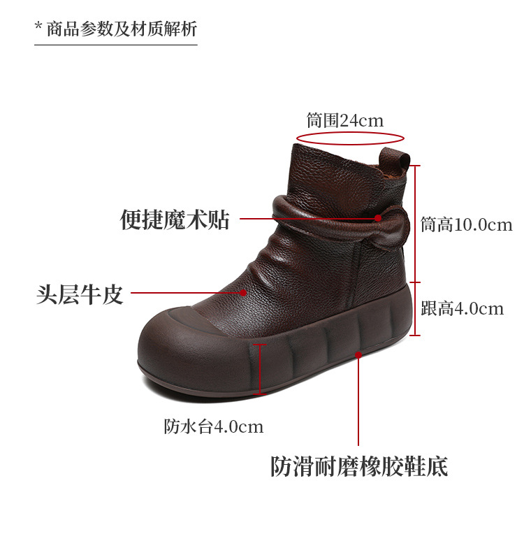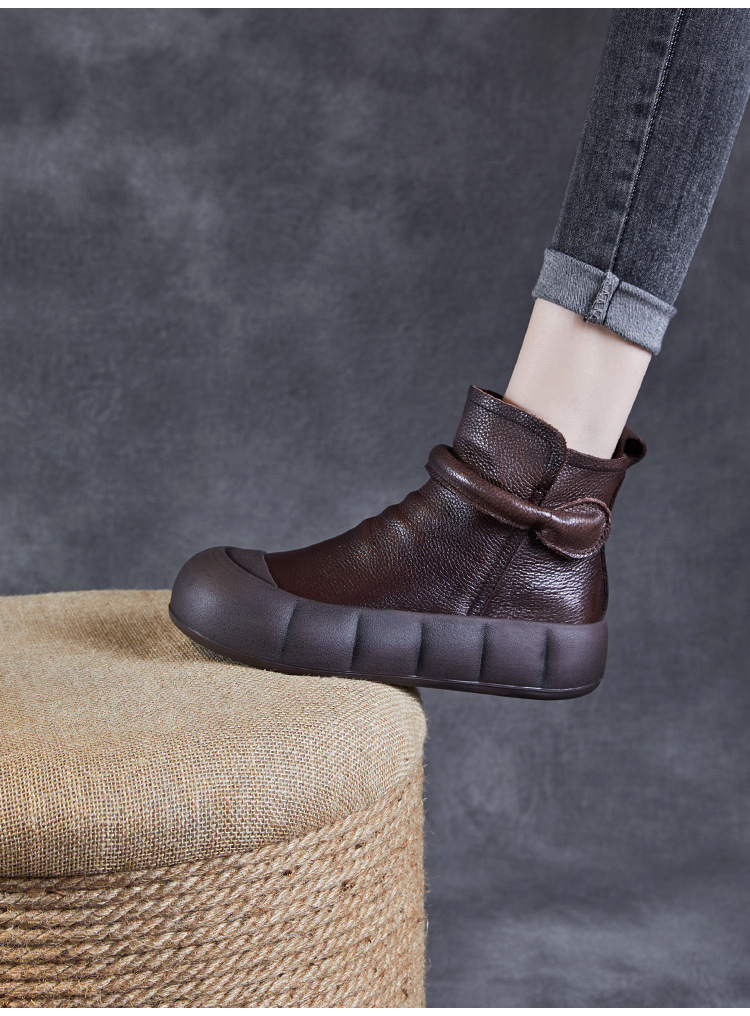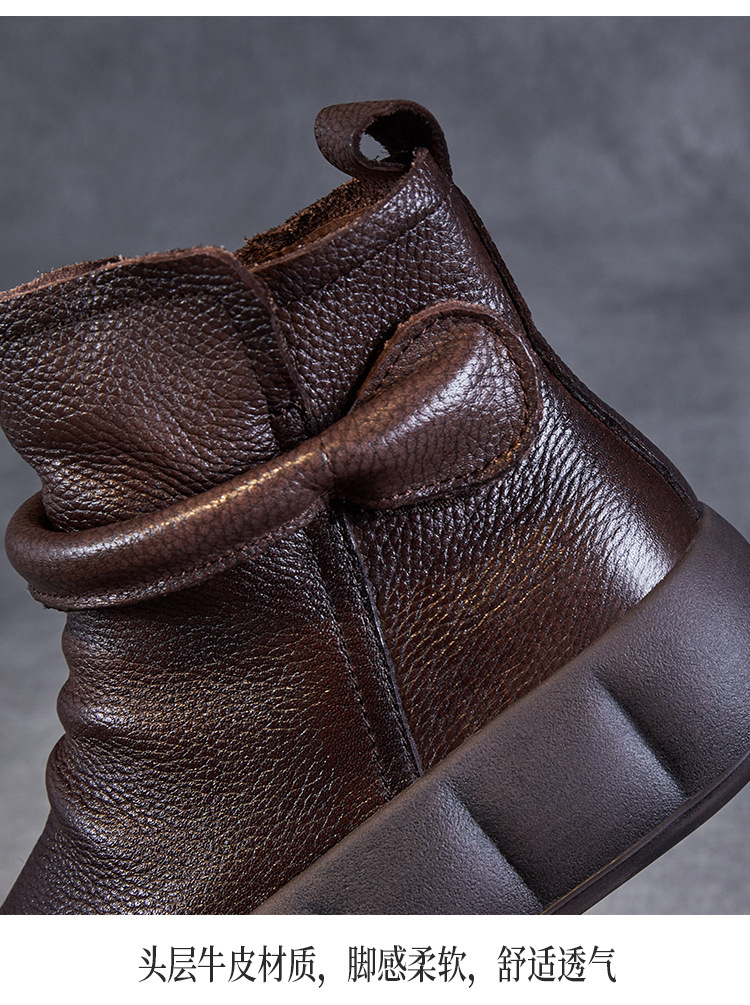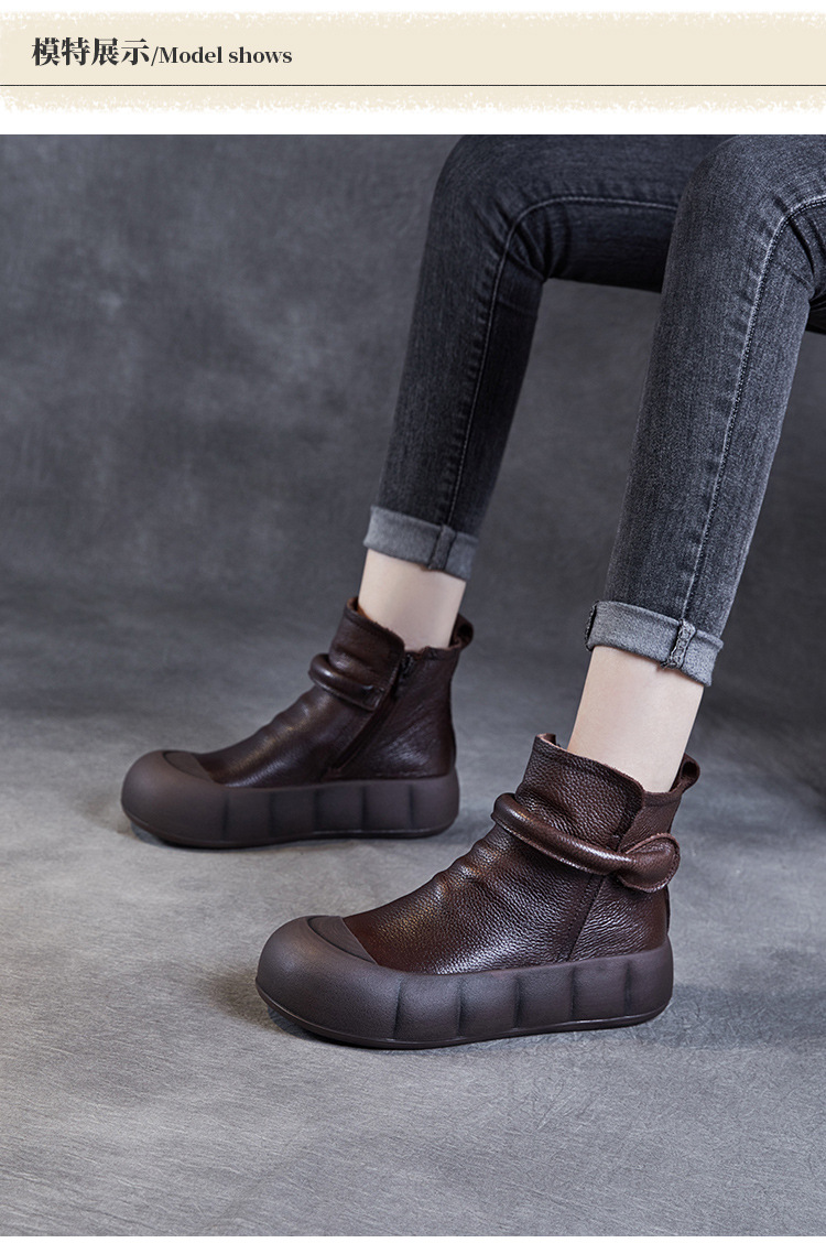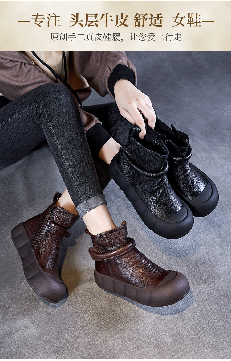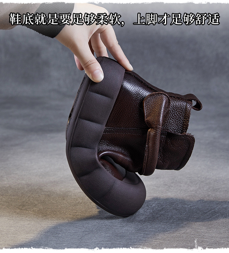 가을 빈티지 수제 Cowhide 두꺼운 밑창 부드러운 가죽 발목 부츠 여성의 부드러운 밑창 캐주얼 하이 탑 여성 신발 다크 브라운 부츠스토어 가기