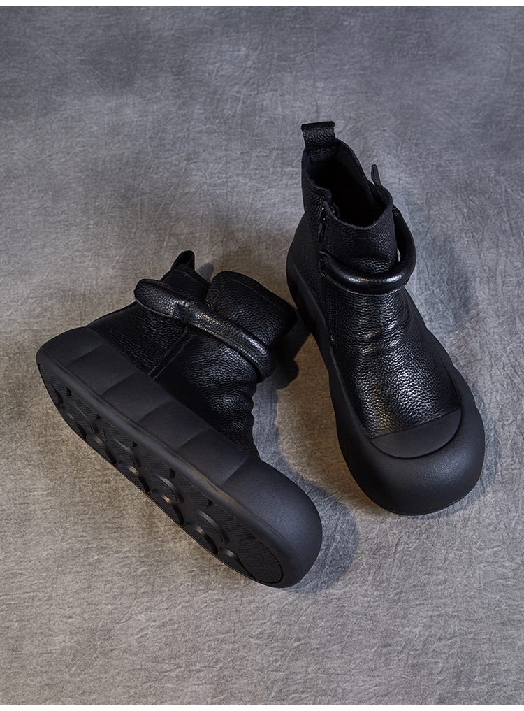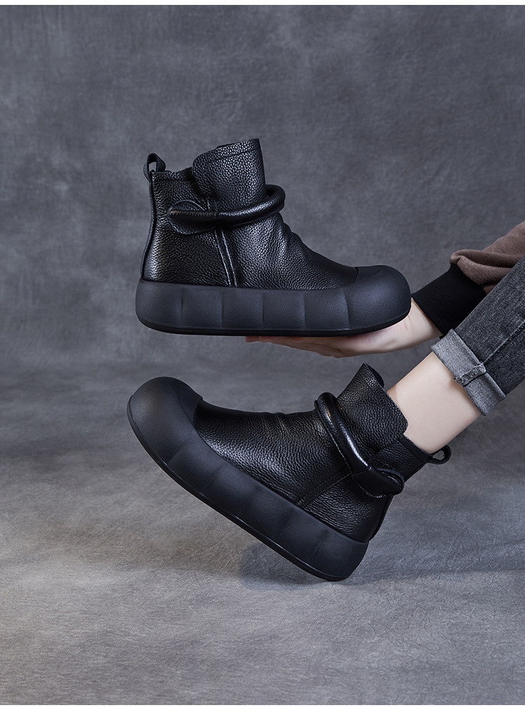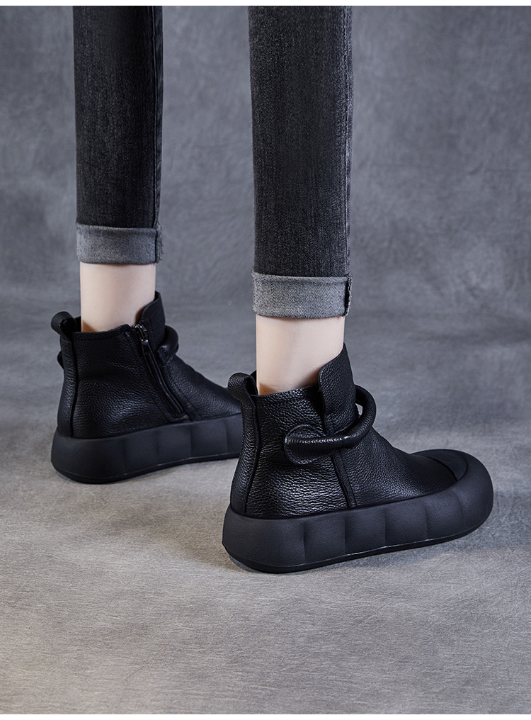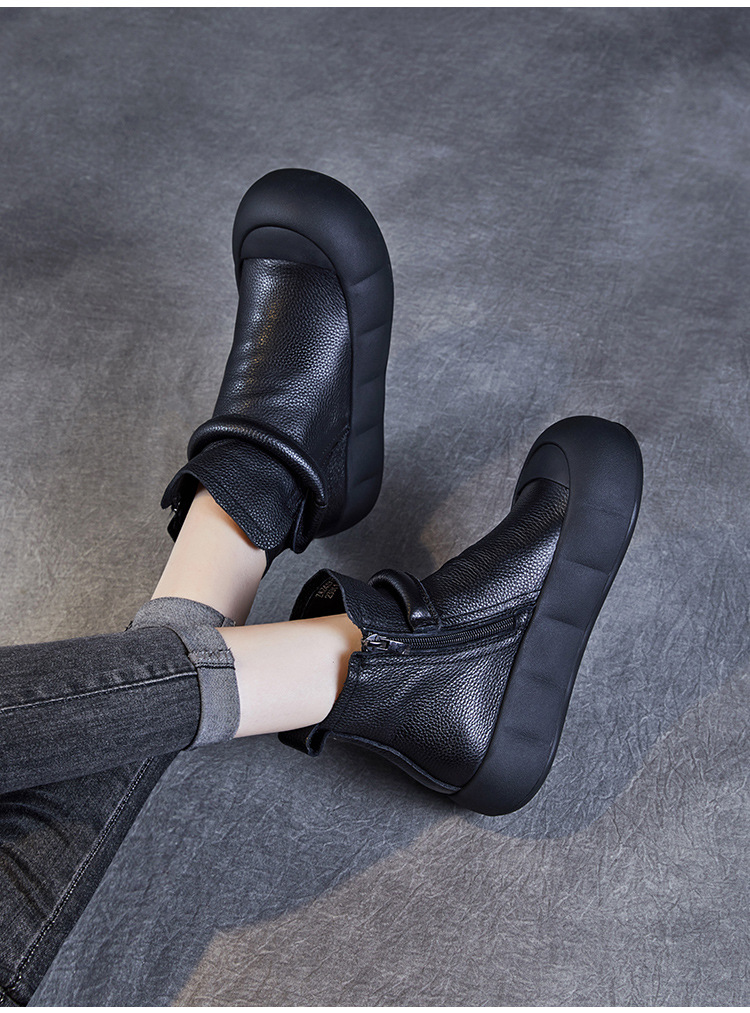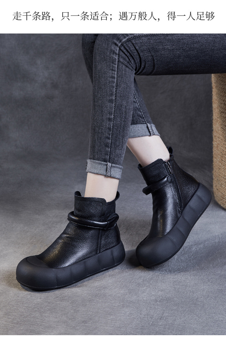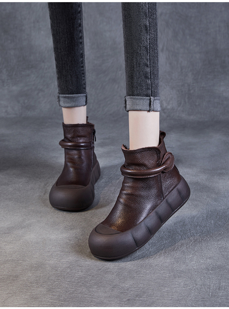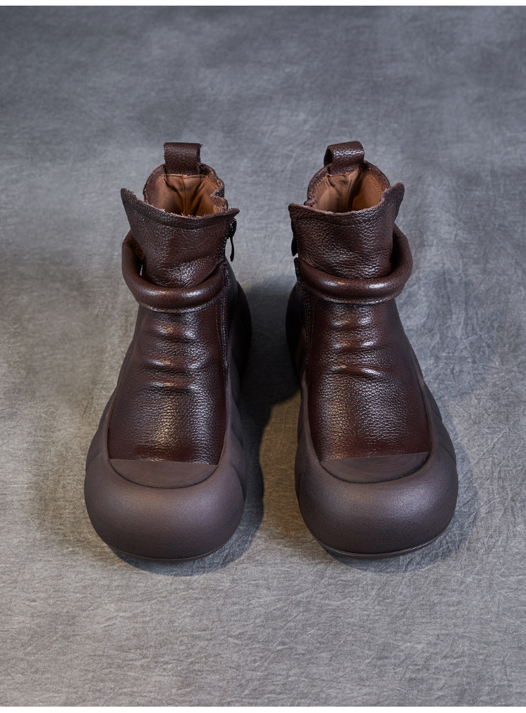 가을 빈티지 수제 Cowhide 두꺼운 밑창 부드러운 가죽 발목 부츠 여성의 부드러운 밑창 캐주얼 하이 탑 여성 신발 다크 브라운 부츠