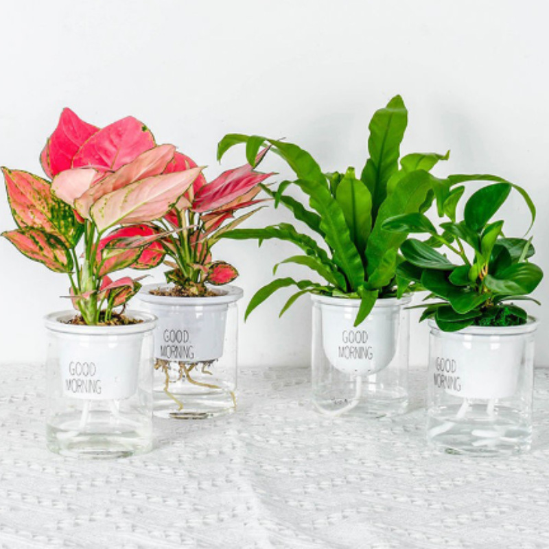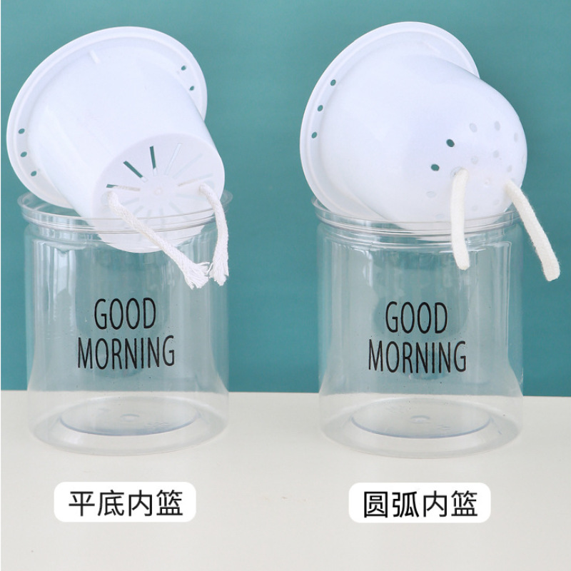 게으른 꽃 냄비 자동적인 물 흡수 녹색 장미 비 급수 라운드 투명한 플라스틱 이중층 물 저장 좋은 아침 냄비 반대로 썩은 뿌리