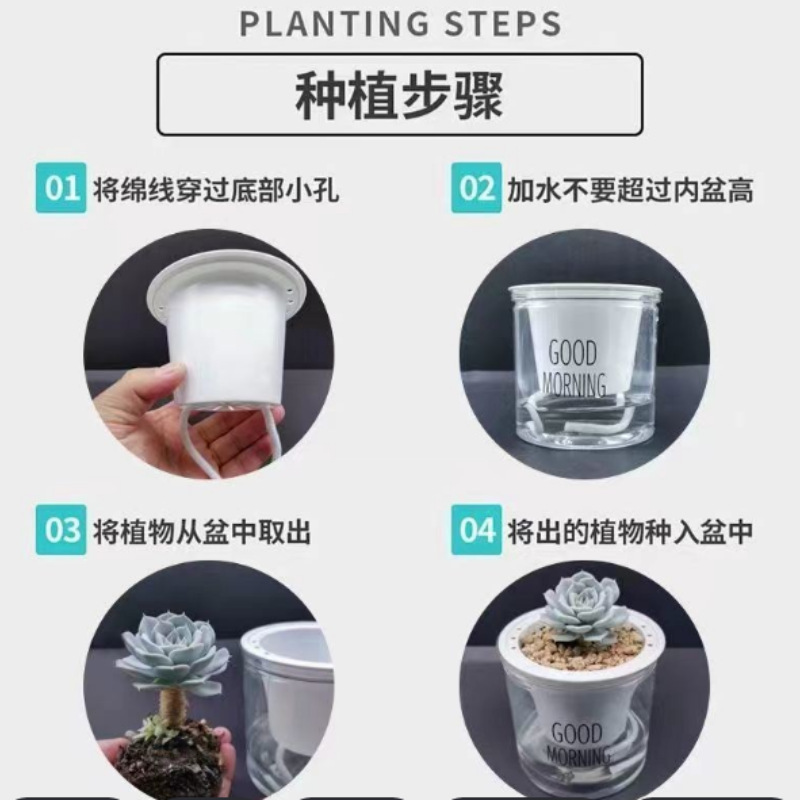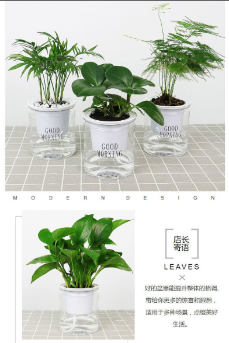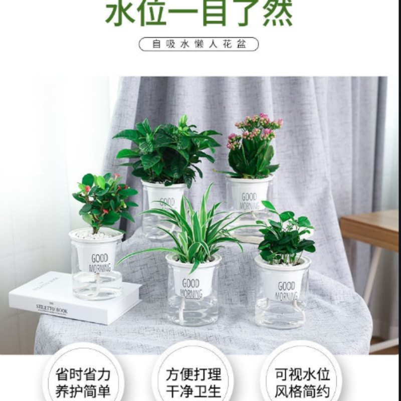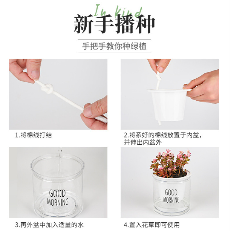 게으른 꽃 냄비 자동적인 물 흡수 녹색 장미 비 급수 라운드 투명한 플라스틱 이중층 물 저장 좋은 아침 냄비 반대로 썩은 뿌리스토어 가기