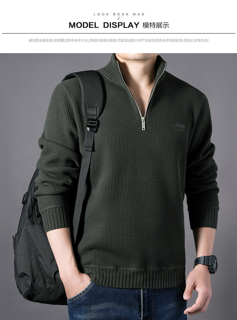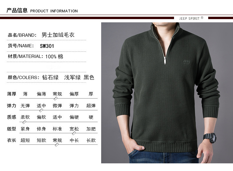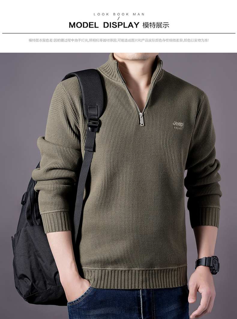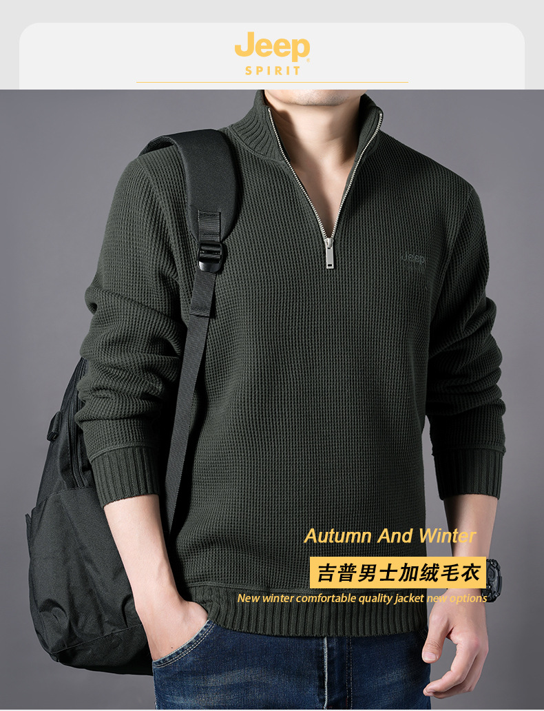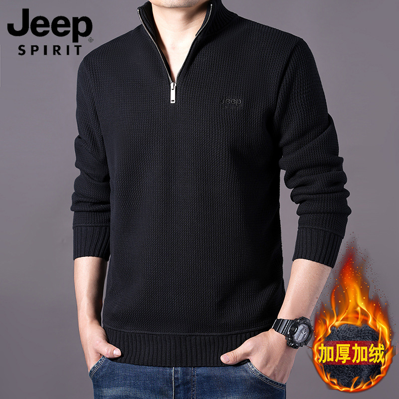 JEEPSPIRIT 반 지퍼 스웨터 남성 가을과 겨울 기모 따뜻한 바닥 스웨터 301스토어 가기