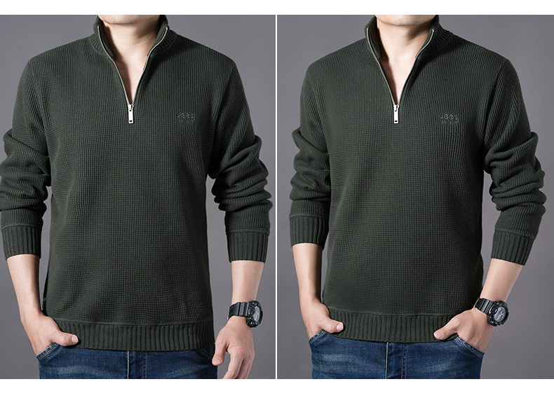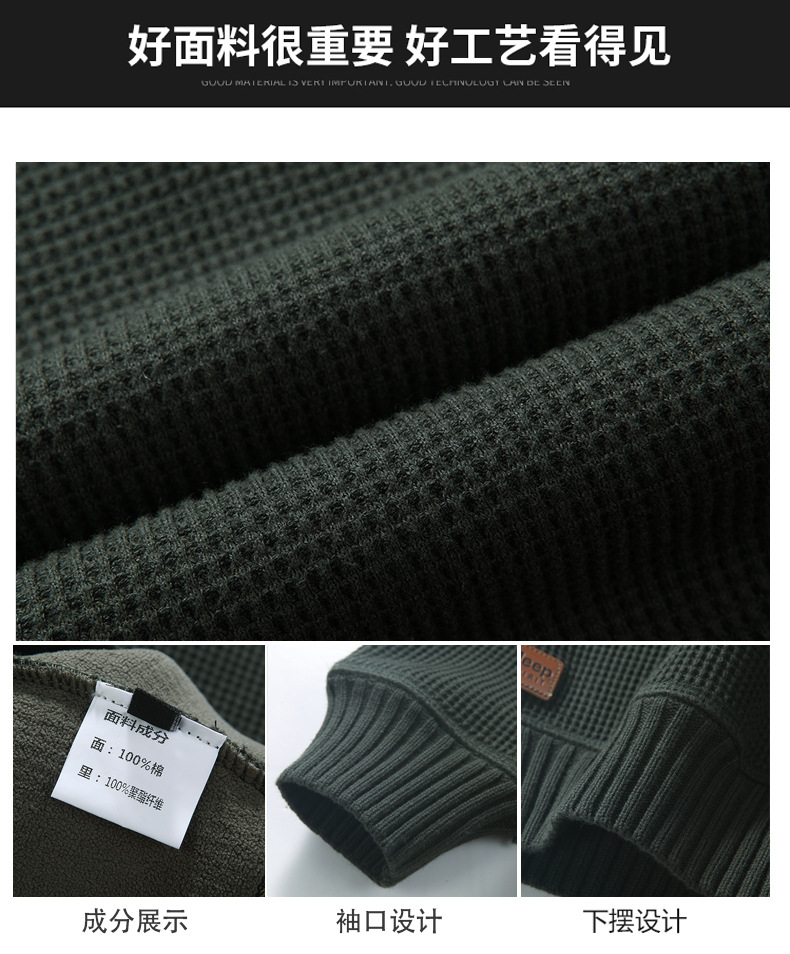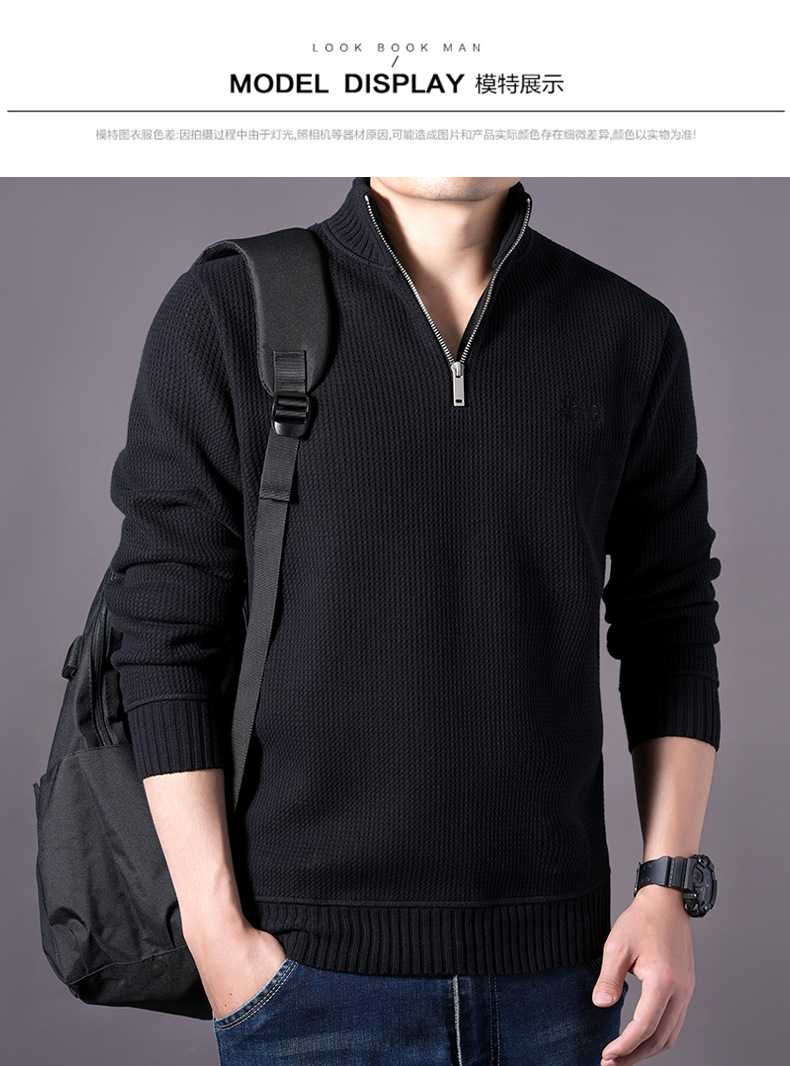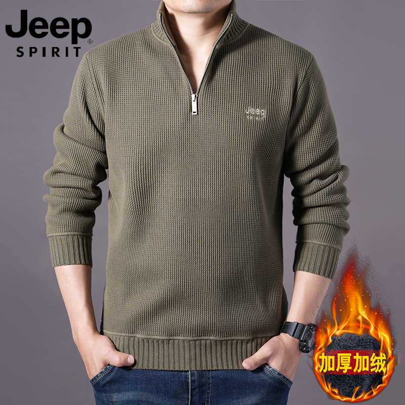 JEEPSPIRIT 반 지퍼 스웨터 남성 가을과 겨울 기모 따뜻한 바닥 스웨터 301