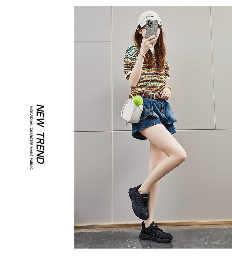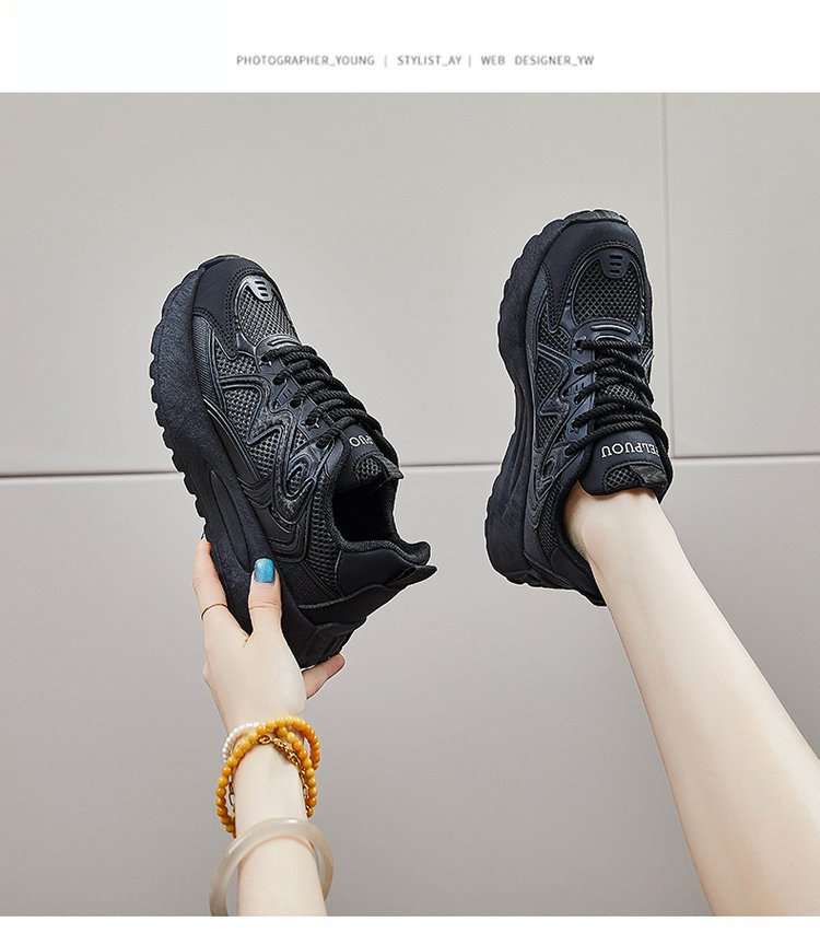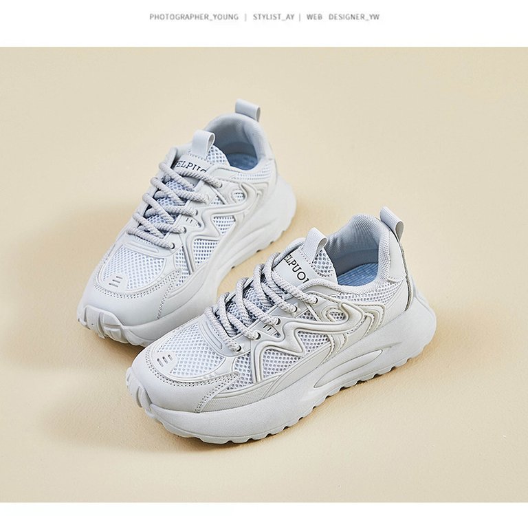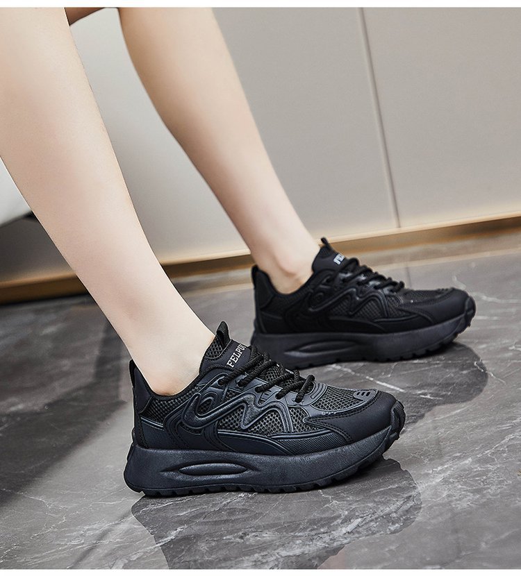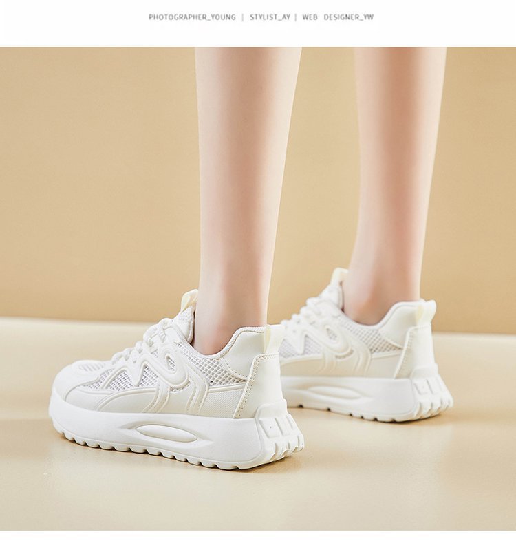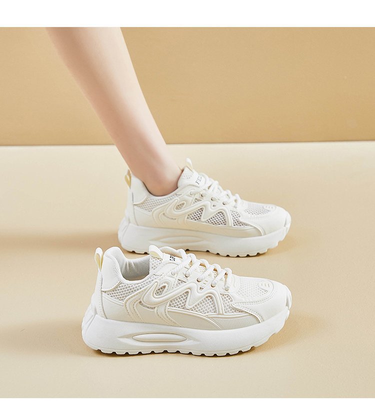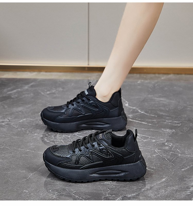 여성의 두꺼운 밑창 운동화 2024 가을 새 메쉬 높이 증가 캐주얼 플랫폼 신발 한국식 유행 학생용 신발스토어 가기