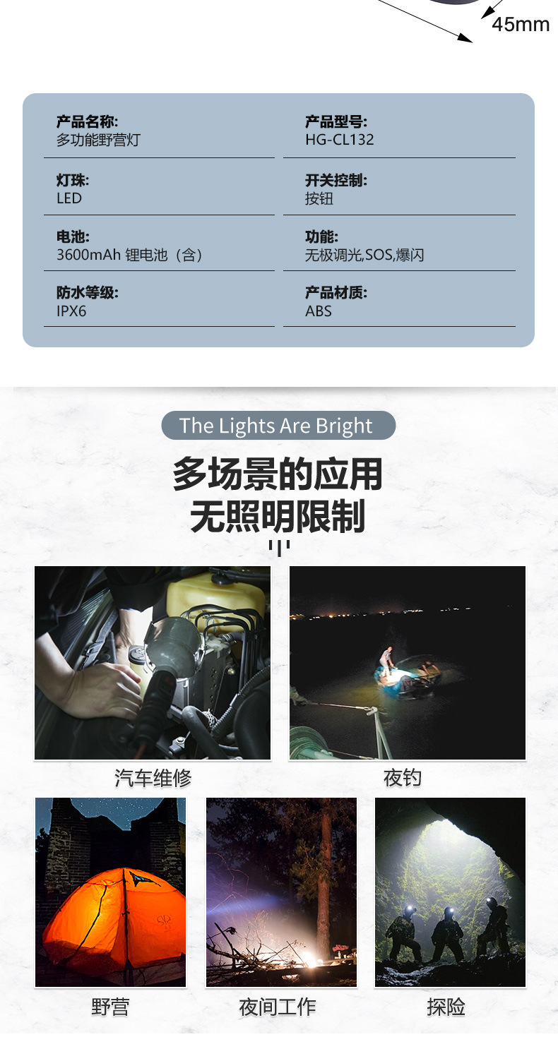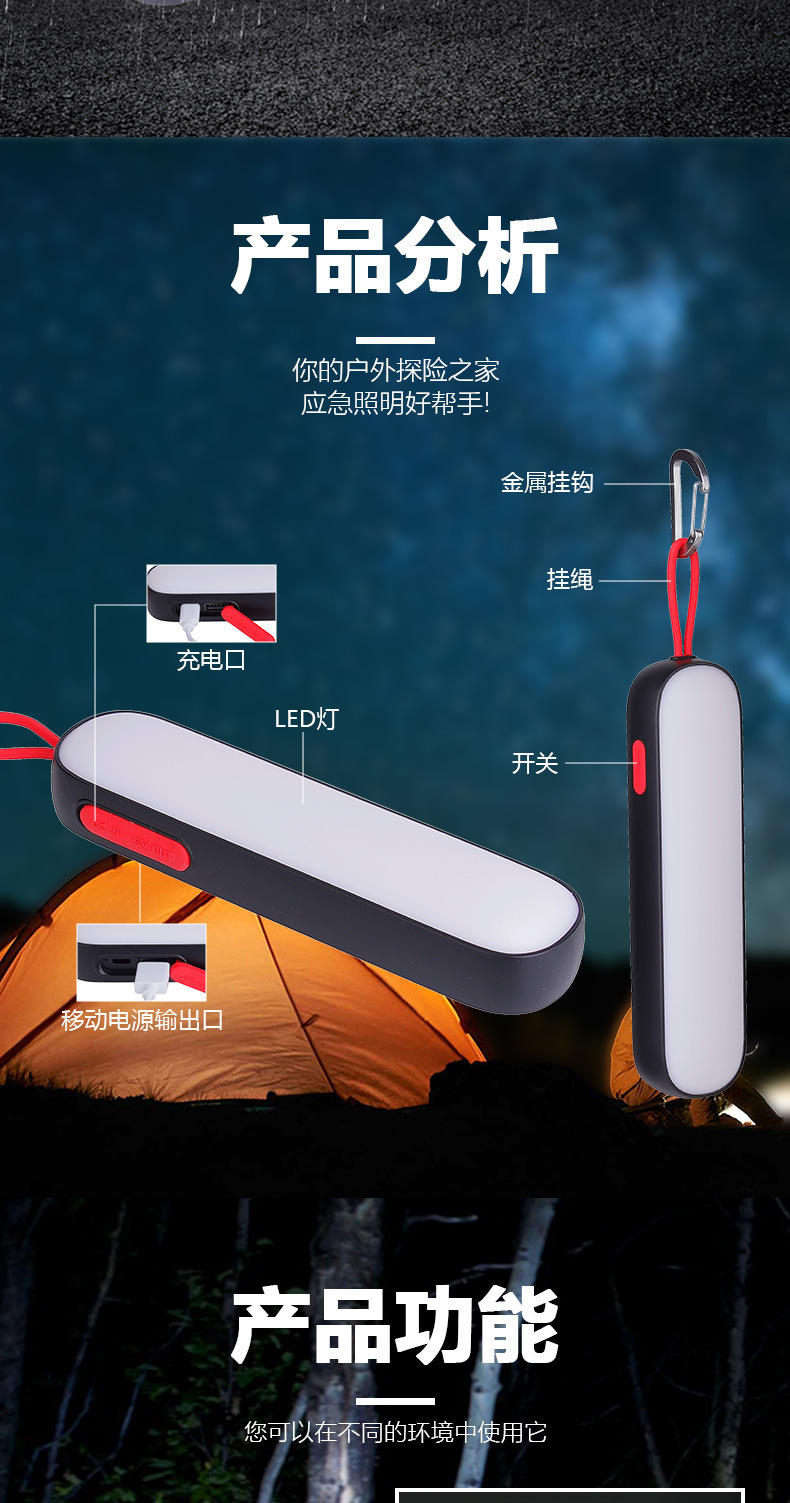 크로스보더 하이브라이트 캠핑 라이트 USB 충전 비상용 손전등 다기능 휴대용 야외 LED 텐트 라이트 초강력스토어 가기
