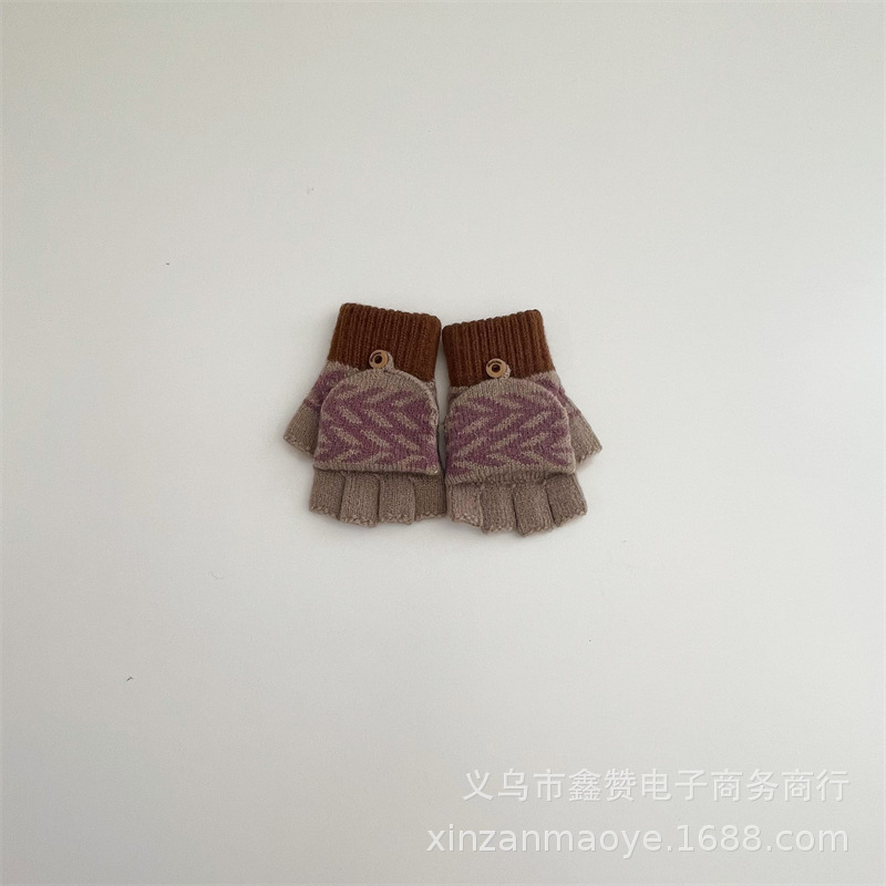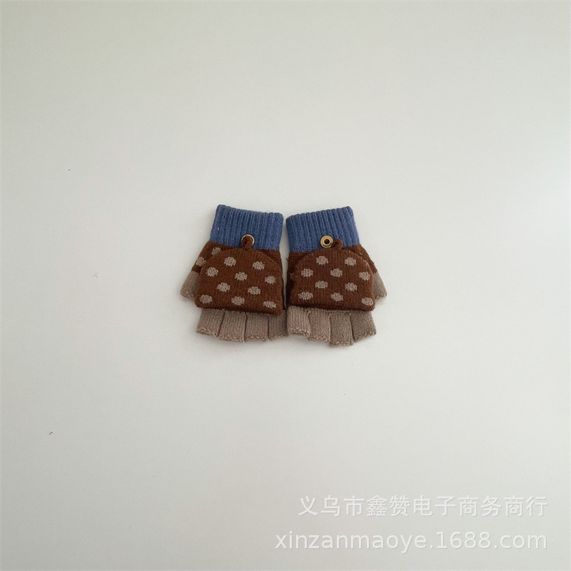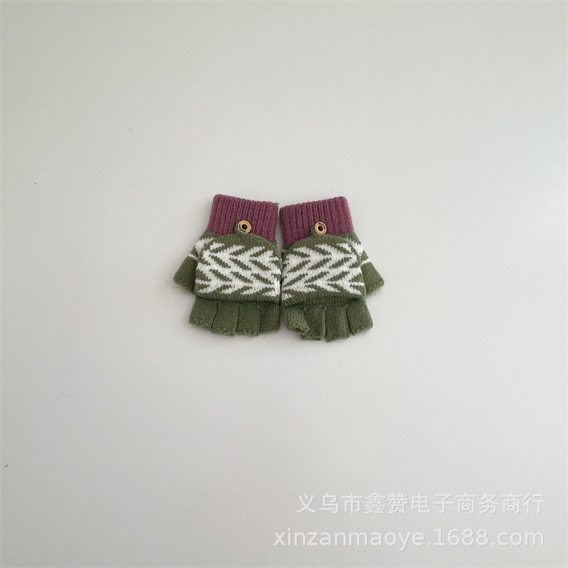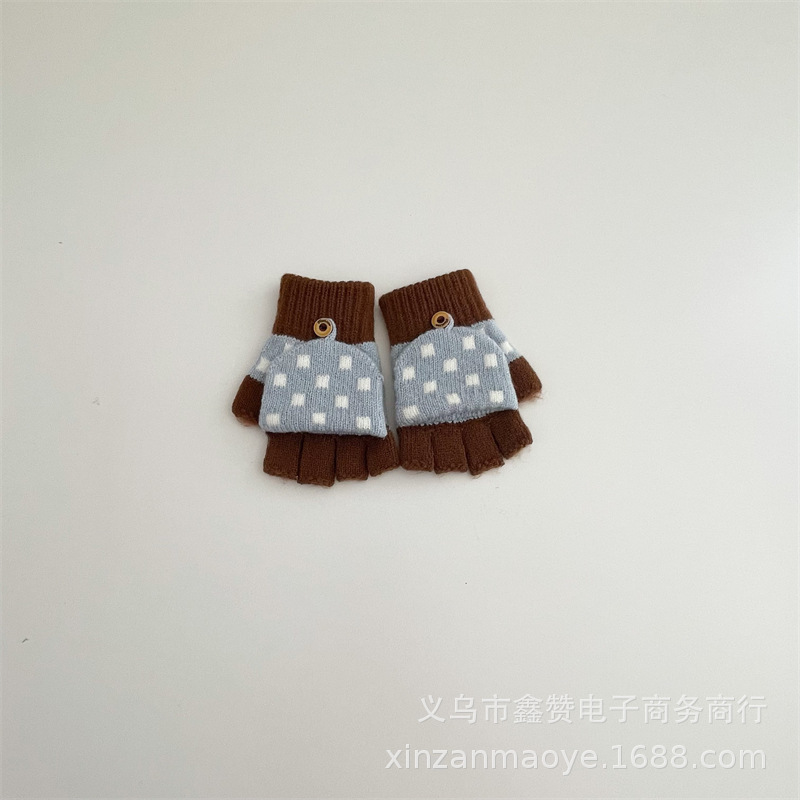한국판 어린이 가을 겨울 장갑 소년 반 손가락 다섯 손가락 플립 장갑 소녀 따뜻한 학교 글쓰기 반 손가락 장갑