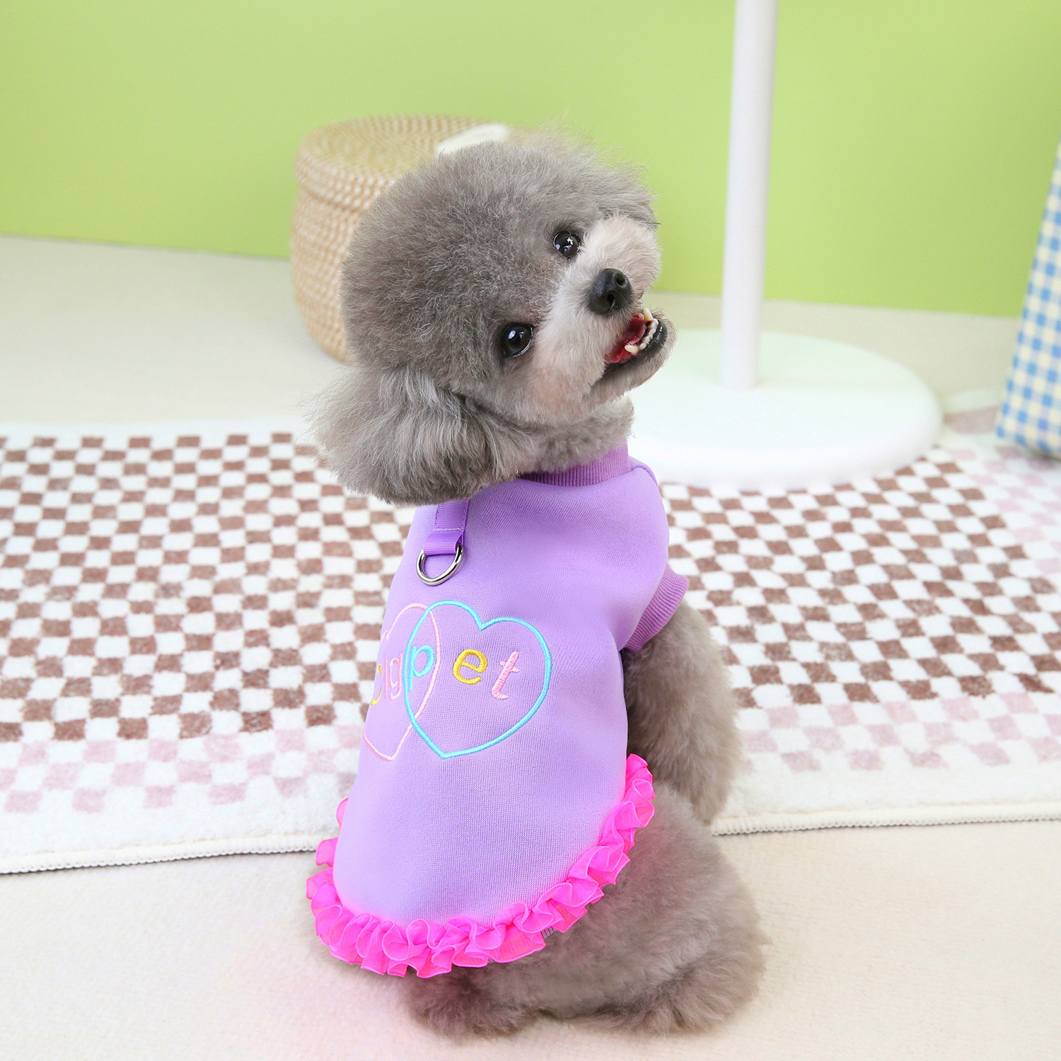 애완견 옷 가을과 겨울 옷 한국 버전의 머리 방지 곰 테디 작은 개 기모 따뜻한 더블 하트 꽃 스웨터스토어 가기