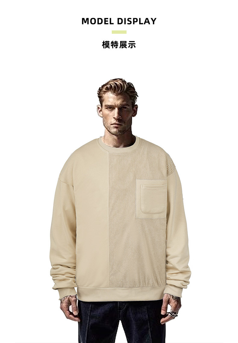 2025년 해외 독립 사이트 인기 상품 봄 가을 신상 루즈핏 단색 니트 긴팔 코듀로이 배색 스웨트셔츠 남성용스토어 가기