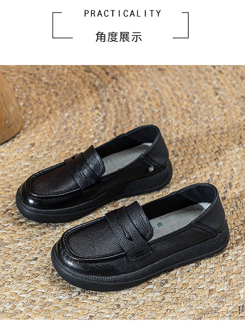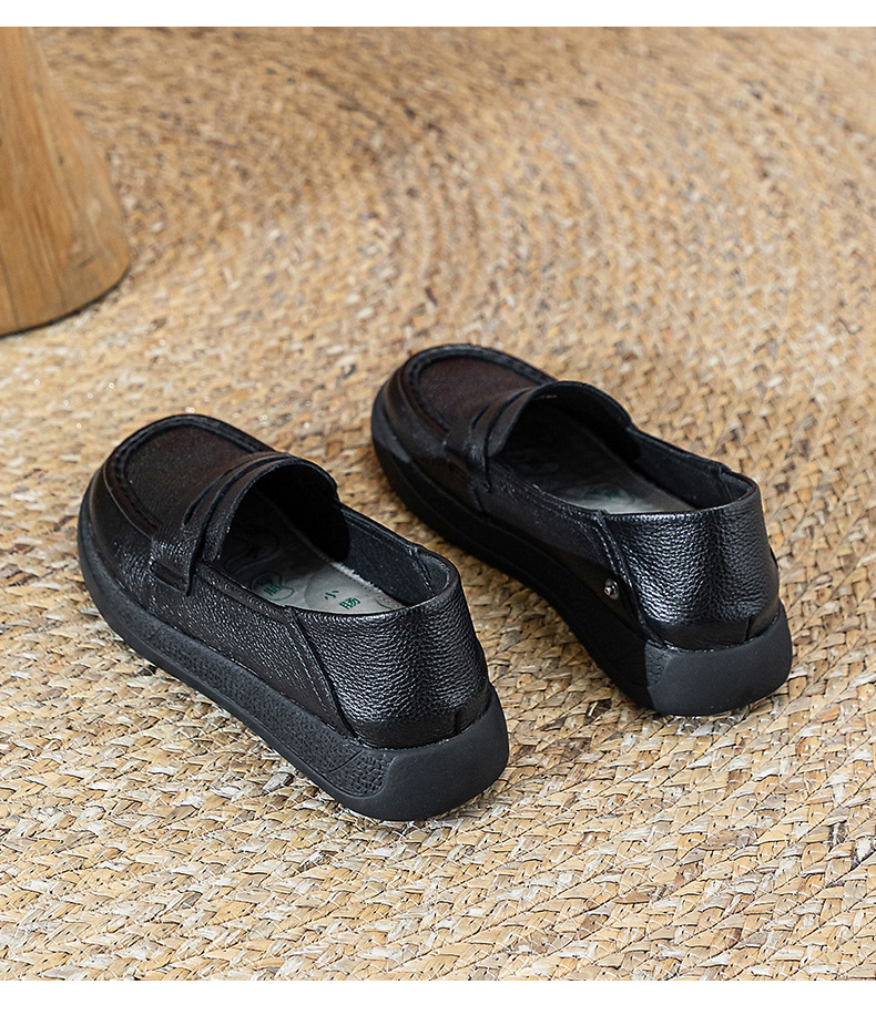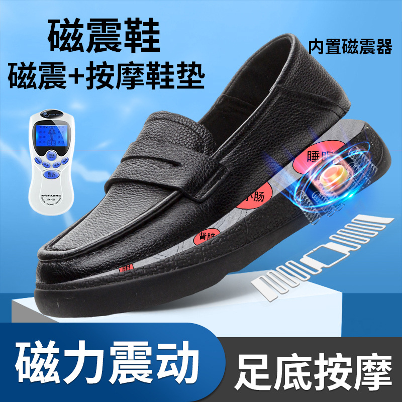 탑 레이어 Cowhide 여성용 플랫 가죽 신발 여성 자기 에너지 진동 다기능 발 아큐포인트 마사지 노인을위한 걷기 신발스토어 가기